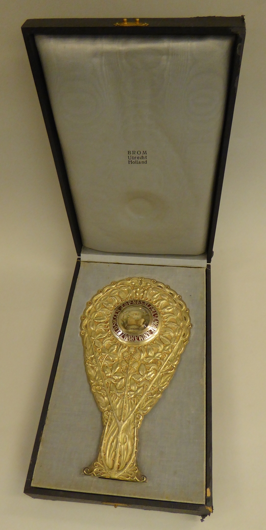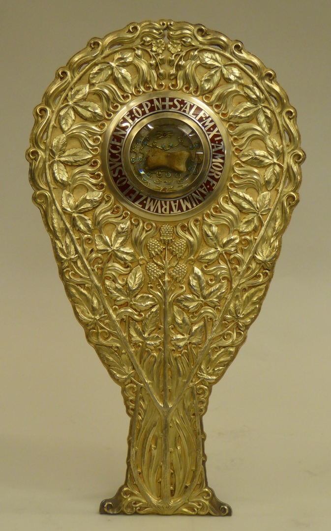 Reliekhouder in vorm van twee bramentakken met reliek van Alphonus de Liguori en met "S. Alf. M. Xi amore animarum zelo succense o.p.n.". Centraal onder de reliekhouder vijf bramen. Achter het reliek een reliekbrief verzegeld met het lakzegel van W.M. kardinaal van Rossum. Merken (voetstuk): - monogram B met hamertje, in staande rechthoek (= meesterteken ...