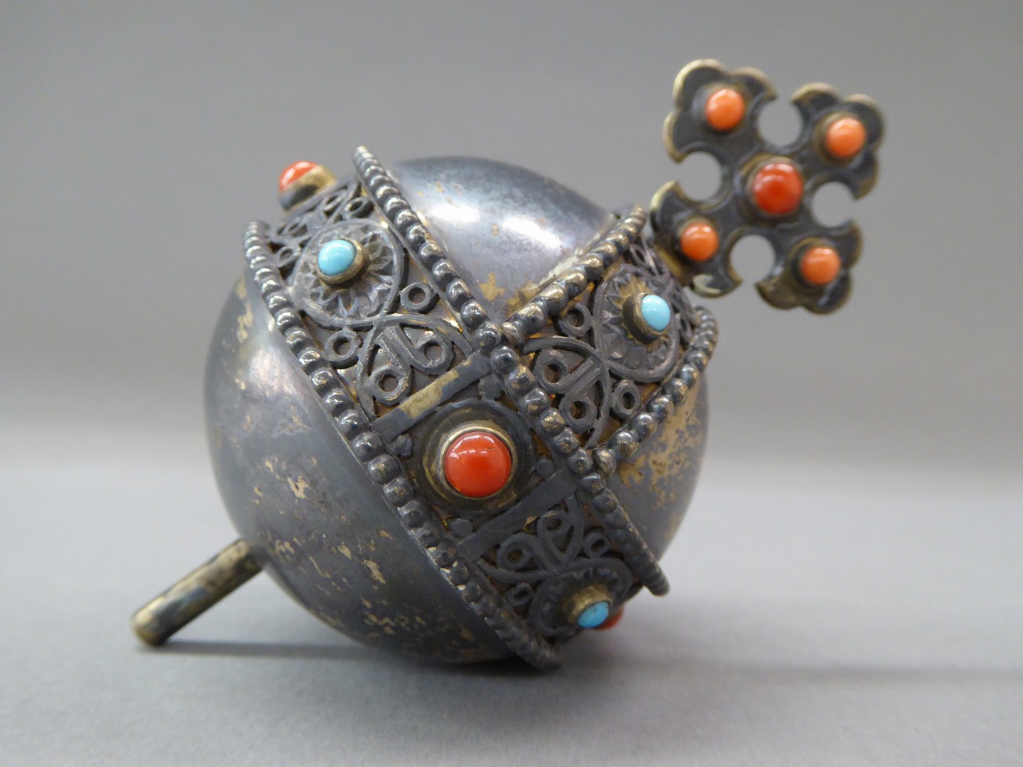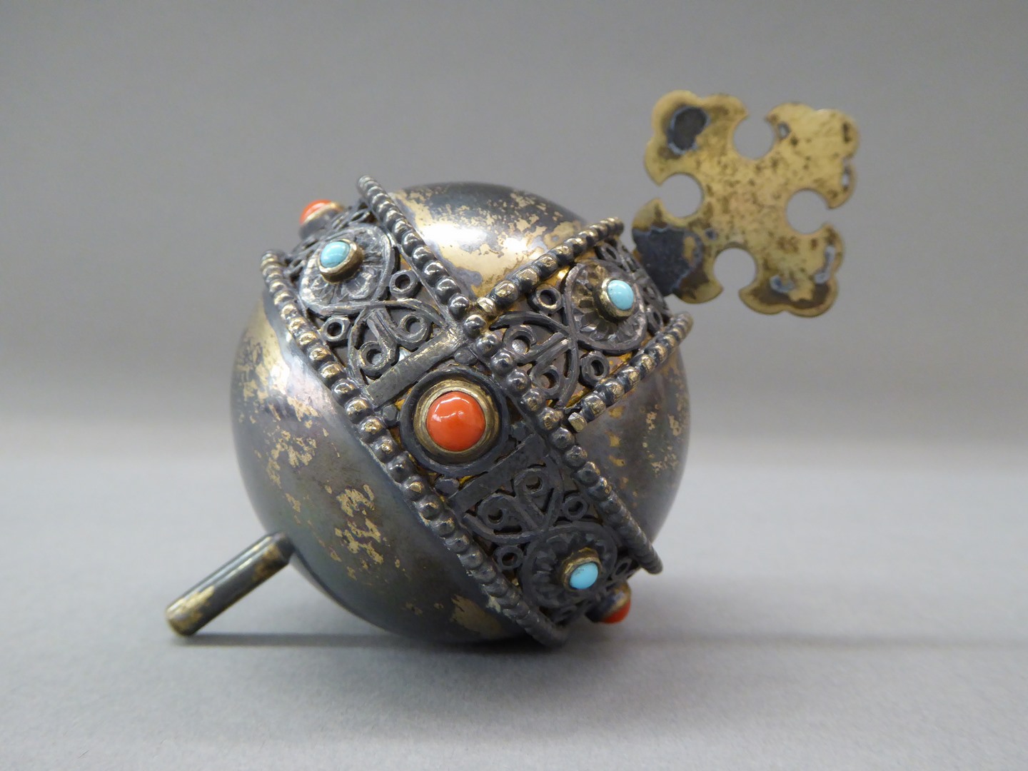 Attribuut voor Mariabeeld: Bolvormige rijksappel gedecoreerd met sierranden, bekroond door kruisje