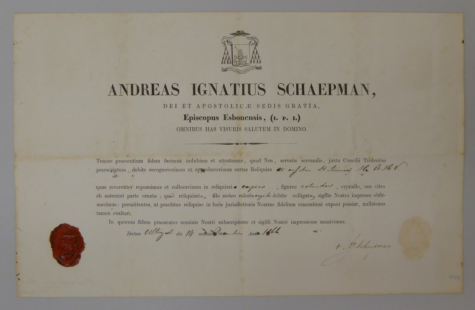 Echtheidsverklaring bij StCC m32a met "Andreas Ignatius Schaepman ..."