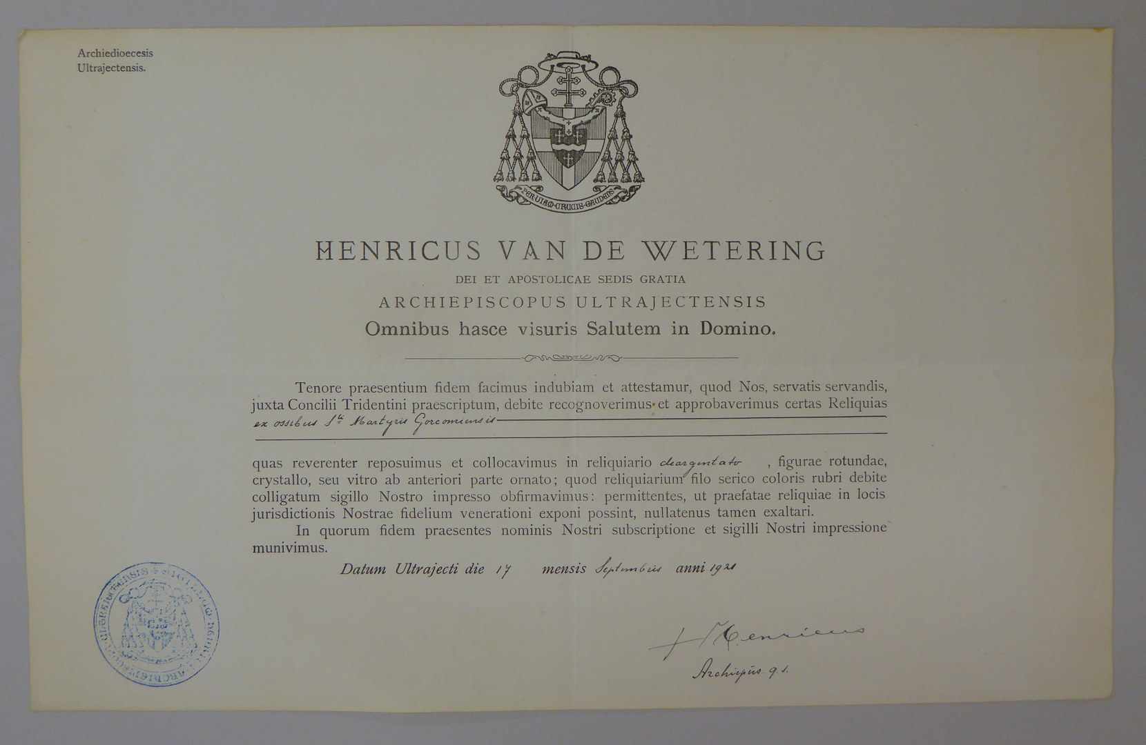 Echtheidsverklaring bij StCC m40a met "Henricus van de Wetering ..."