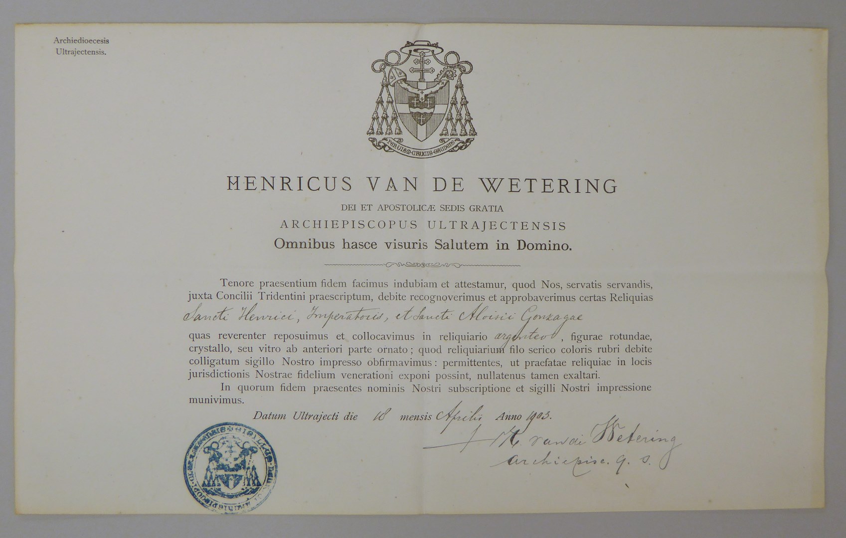 Echtheidsverklaring bij StCC m42a met "Henricus van de Wetering ..."