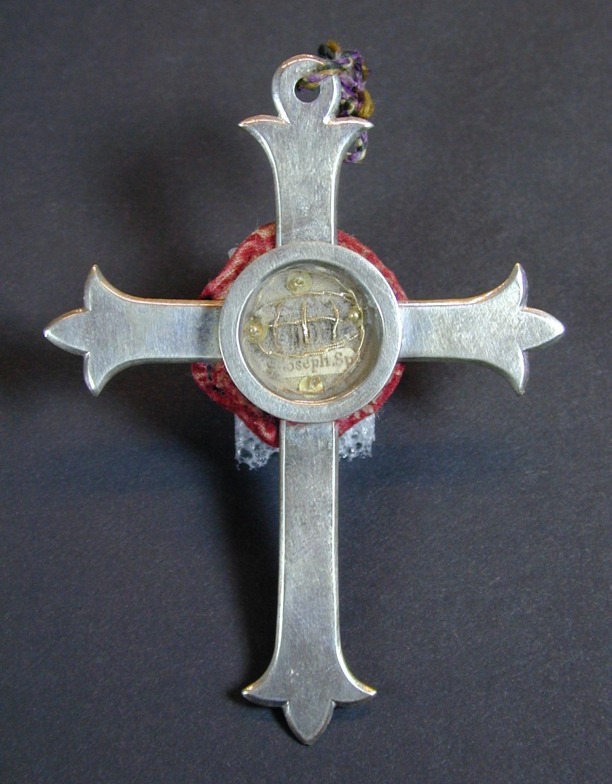 Reliekmedaillon in kruisvormige versiering met reliek H. Joseph