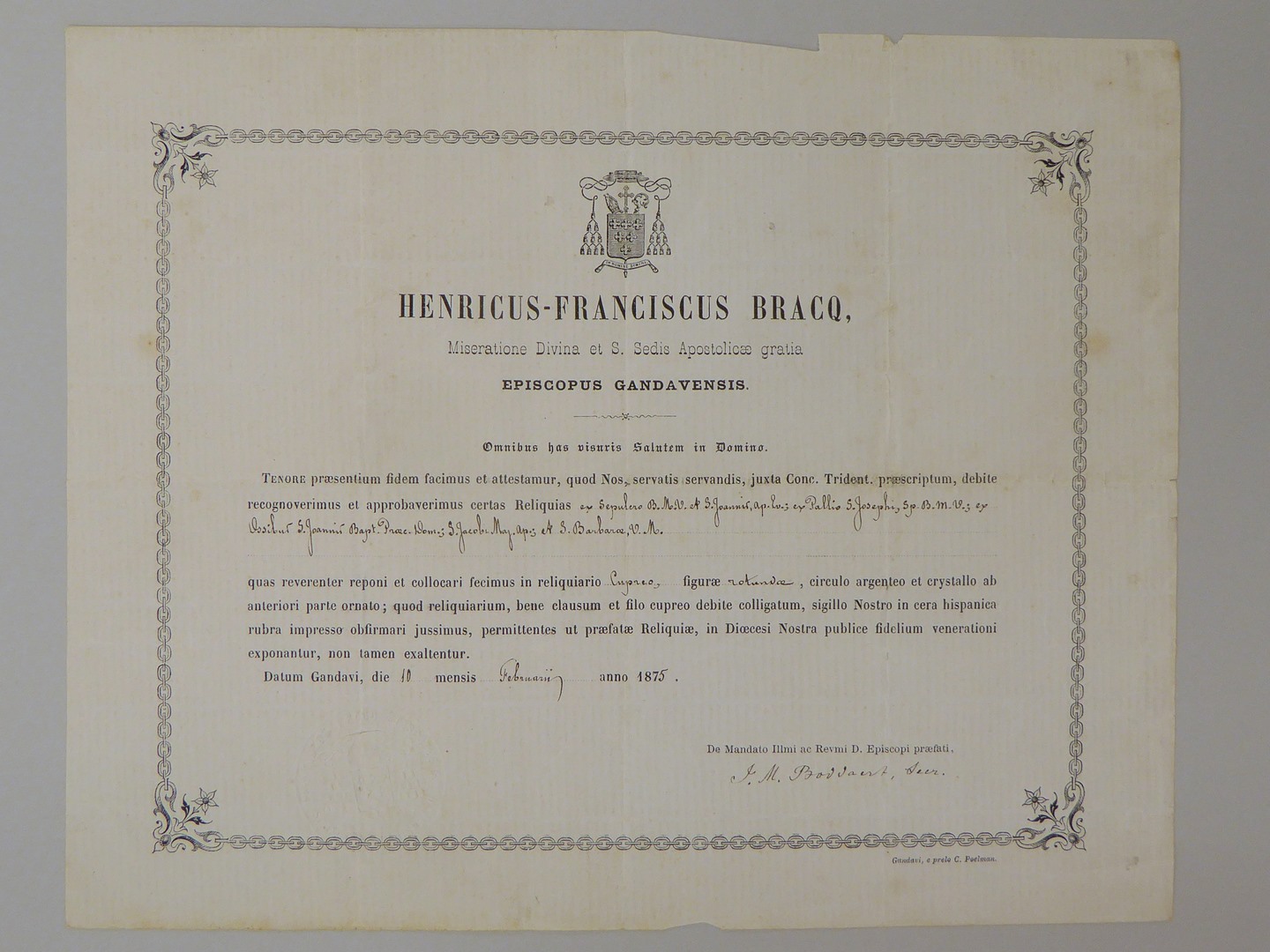Echtheidsverklaring bij StCC m49a met "Henricus-Franciscus Bracq ..."