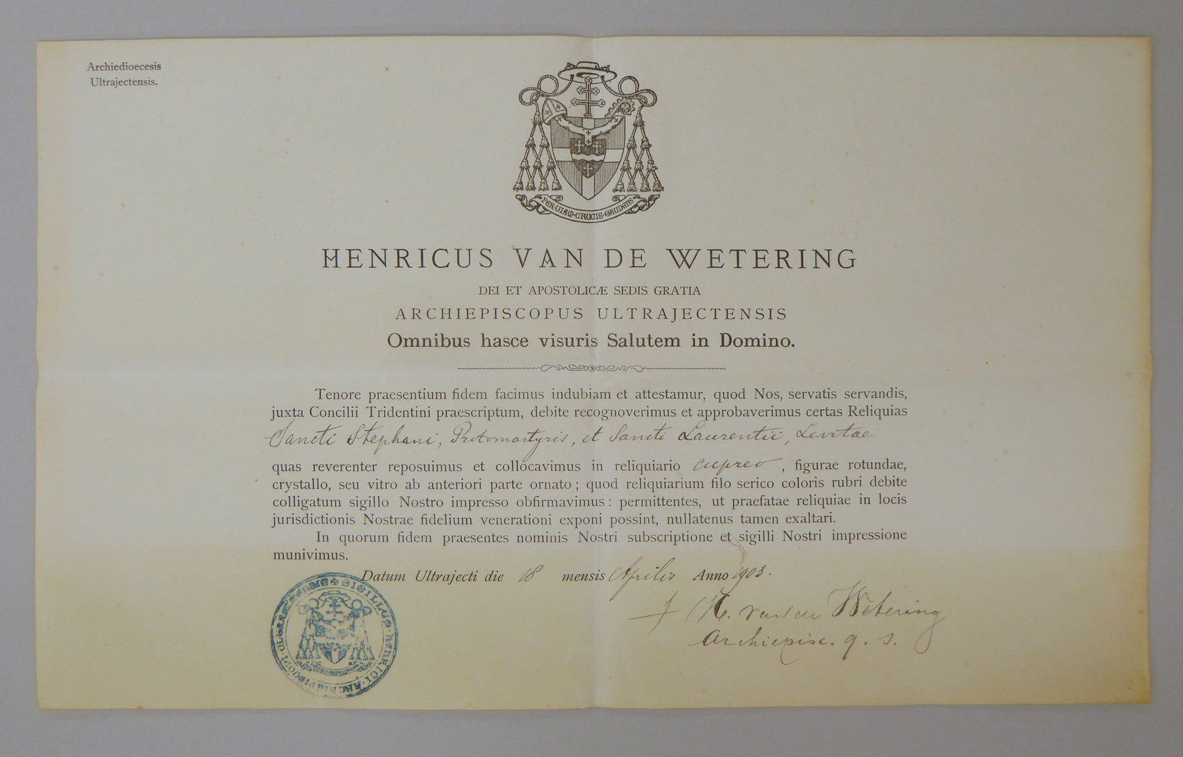Echtheidsverklaring bij StCC m57a met "Henricus van de Wetering ..."