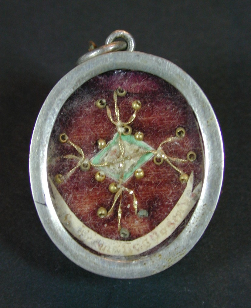 Reliekmedaillon met onbekende reliek op rood fluweel