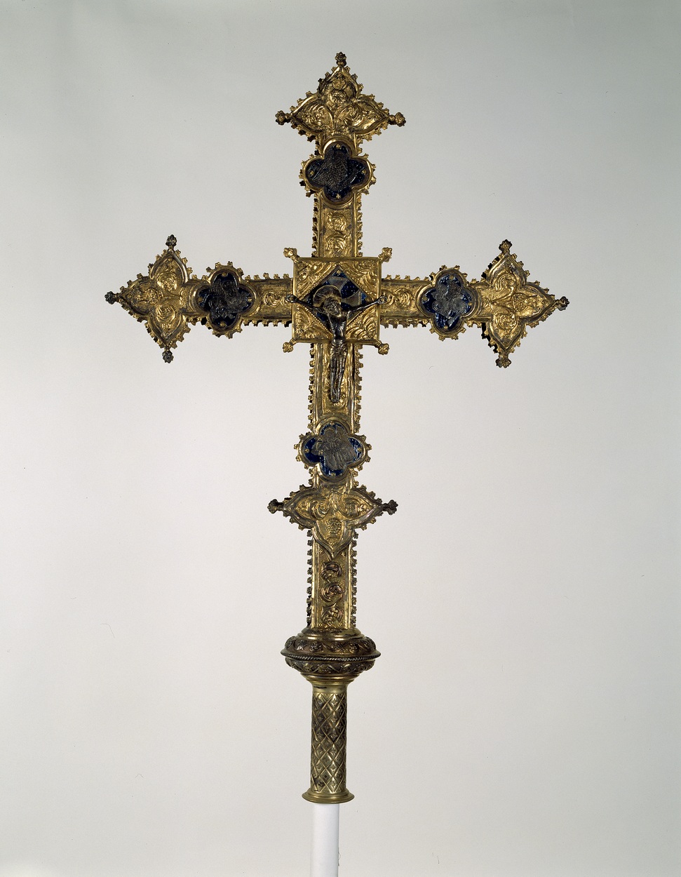 Processiekruis met op kruisbalken evangelistensymbolen, in het midden Christusfiguur
