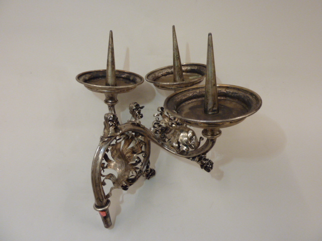 Wandarm, uit stam ontspruiten drie voluten eindigend in schaalvormige bobèche
