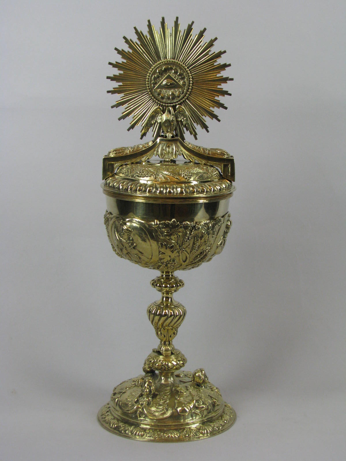 Ciborie op ronde voet met HH. Hyacinthus, Dominicus en Thomas tussen drie engelenkopjes