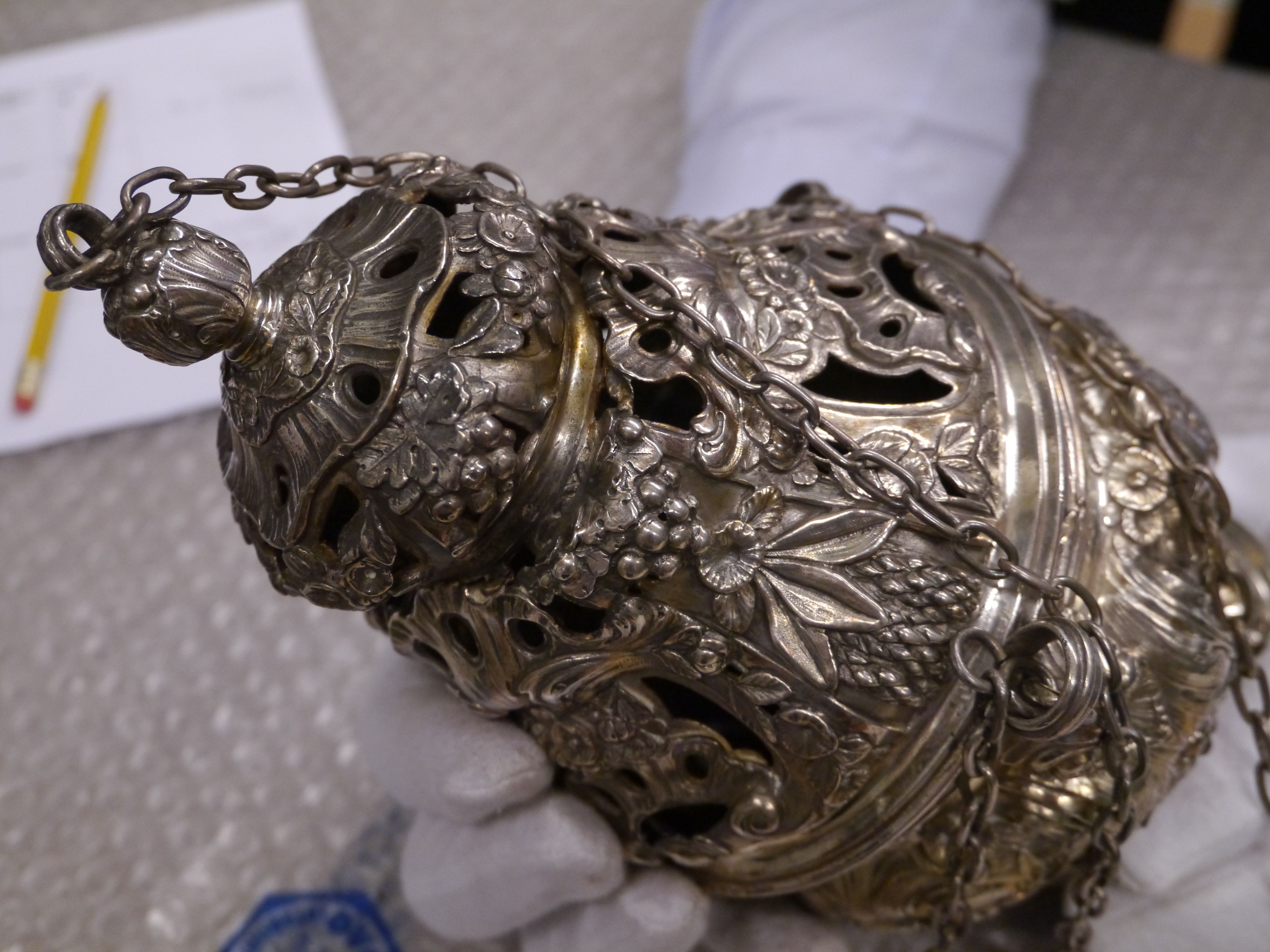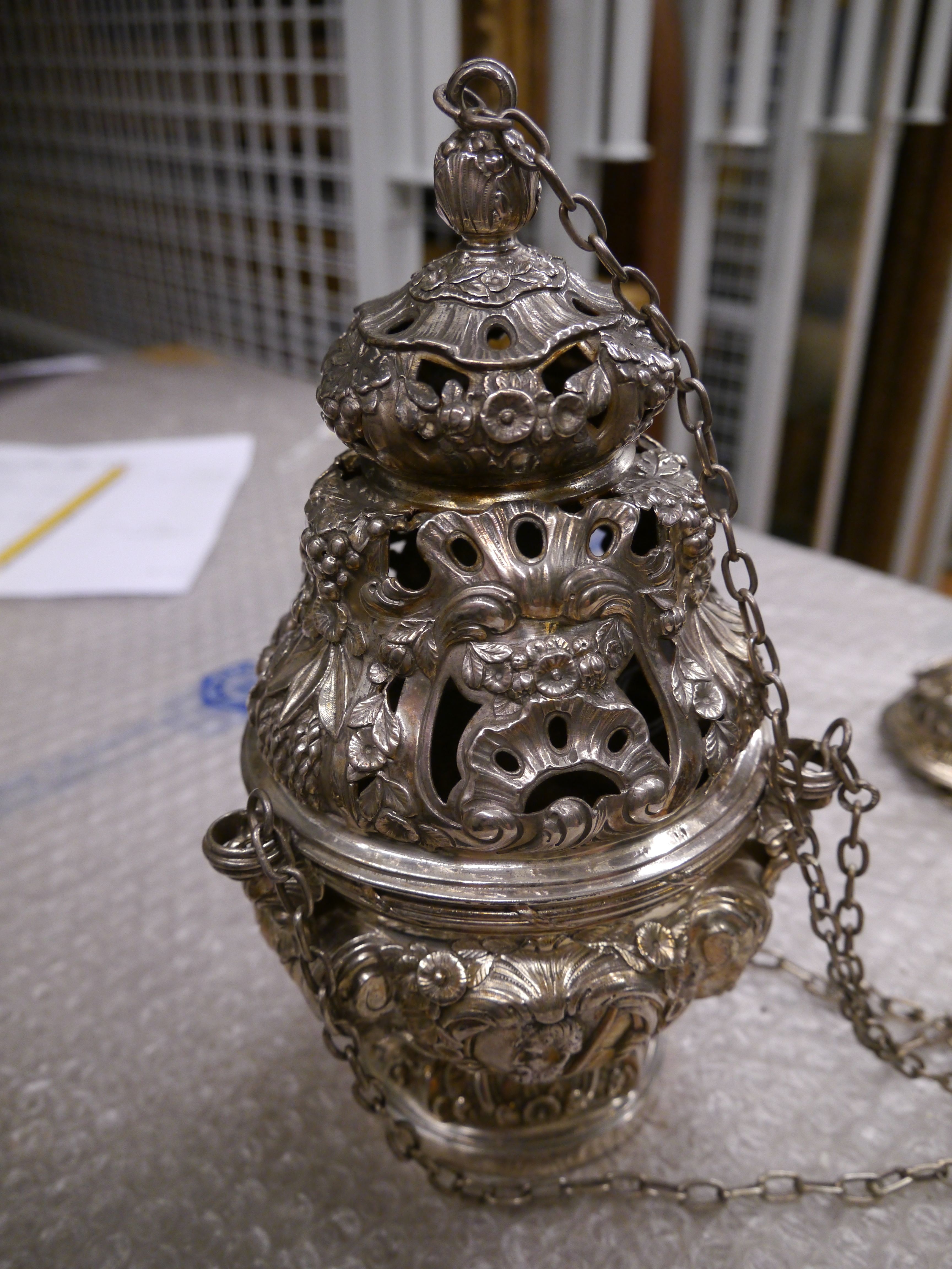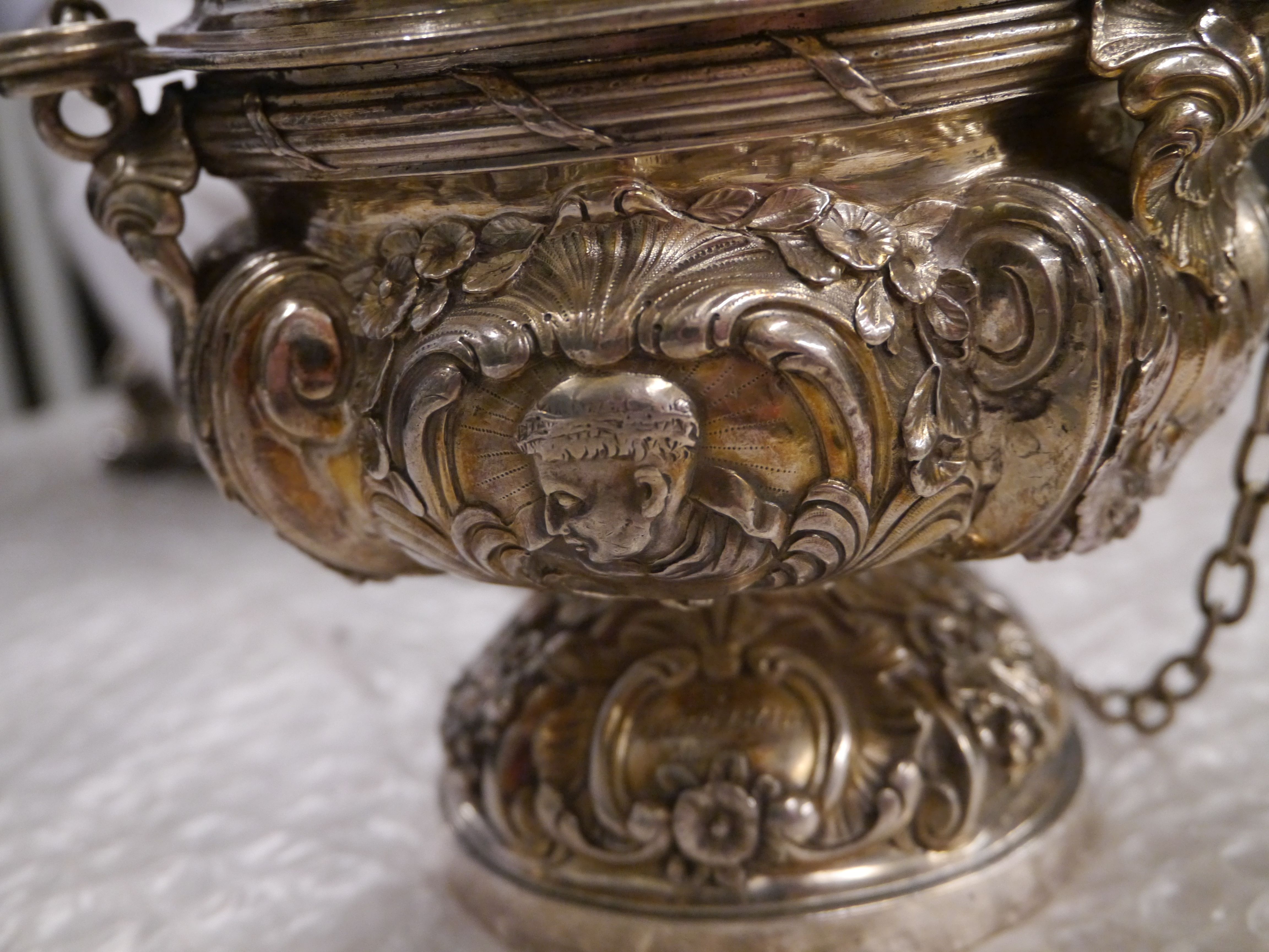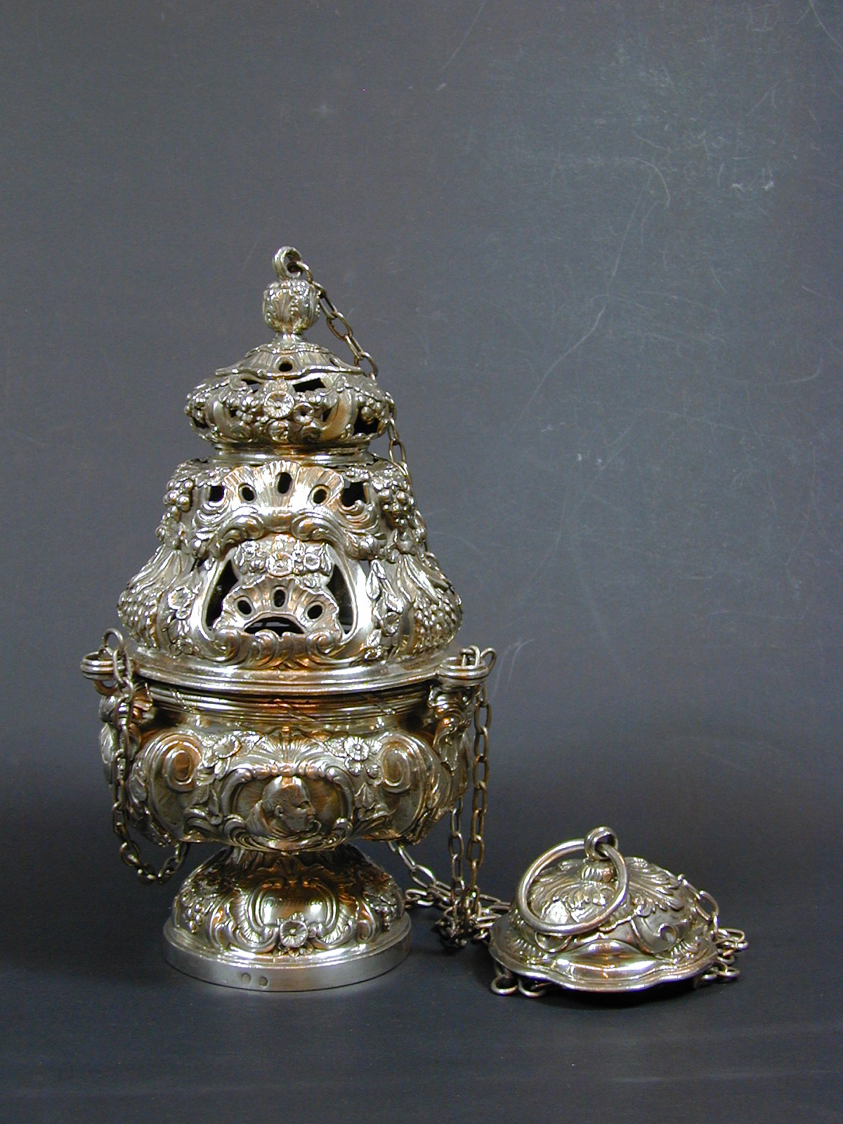 Wierookvat met drie medaillons met Paulus Apostel, Dominicus en B. Franciscus Mart.