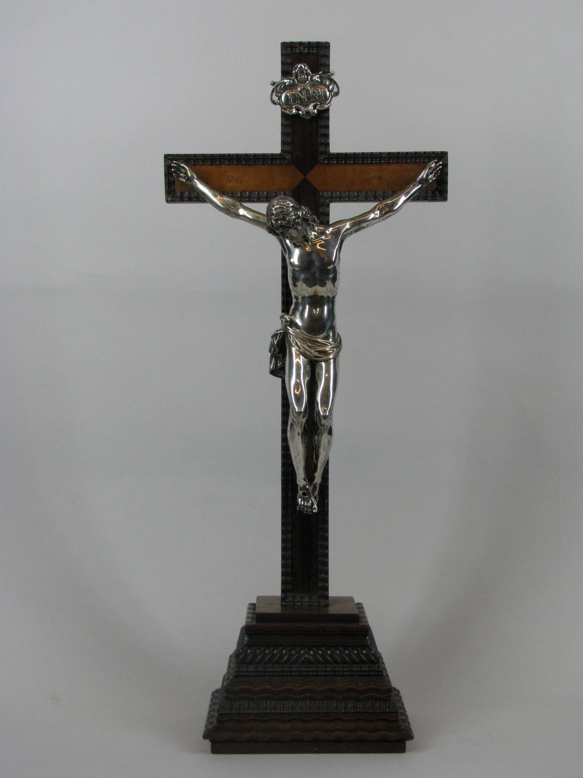Mahoniehouten kruis met zilveren corpus