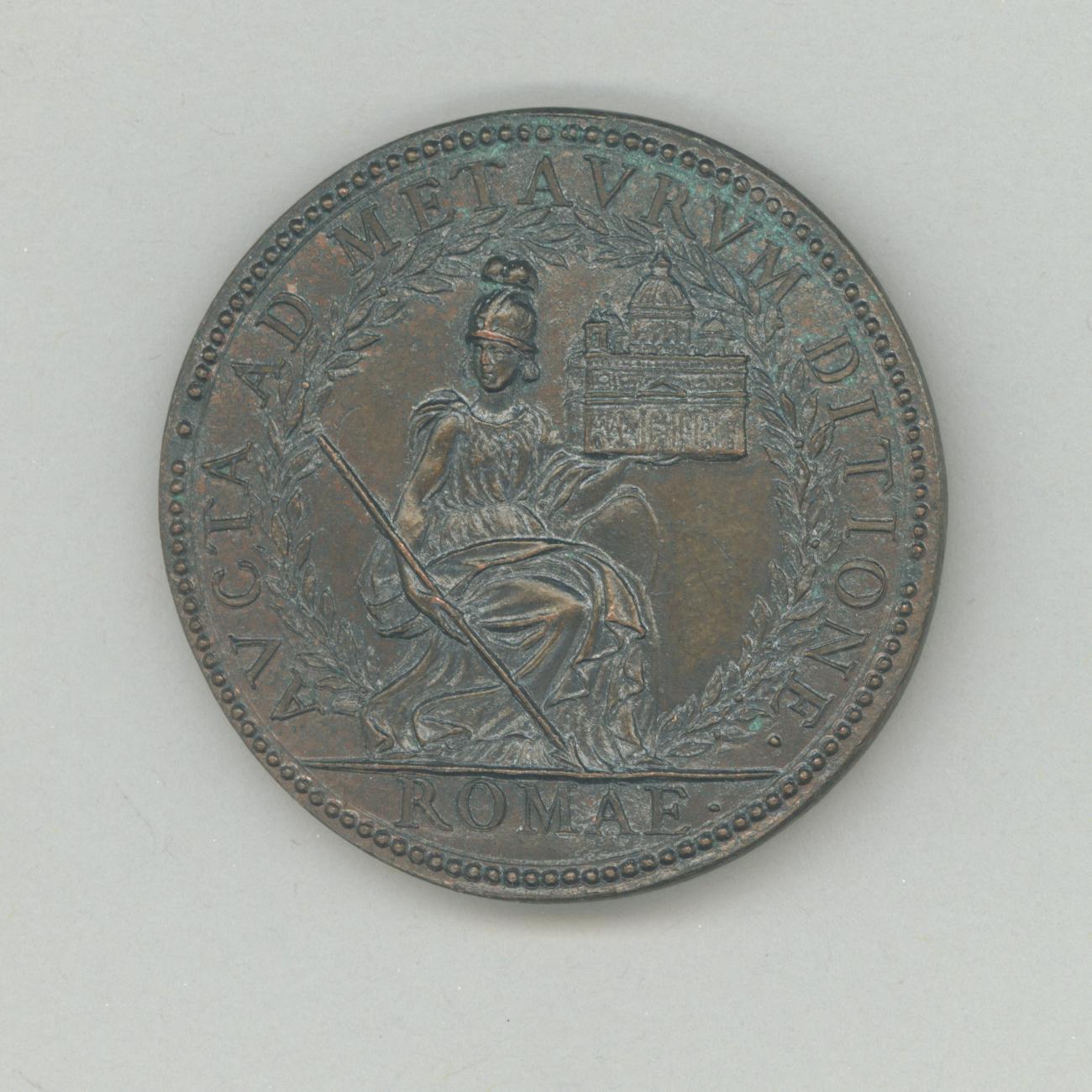 Pauspenning met portret paus Urbanus VIII (1623-1644), met "... A IIII", kz. personificatie van Rome, gezeten, met in haar linkerhand de kerk St. Pieter, in haar rechterhand een lans, geheel omgeven door olijfkrans