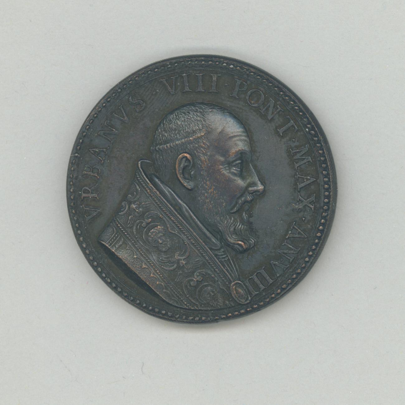 Pauspenning met portret paus Urbanus VIII (1623-1644), met "... AN VIII", kz. consecratie van kerk