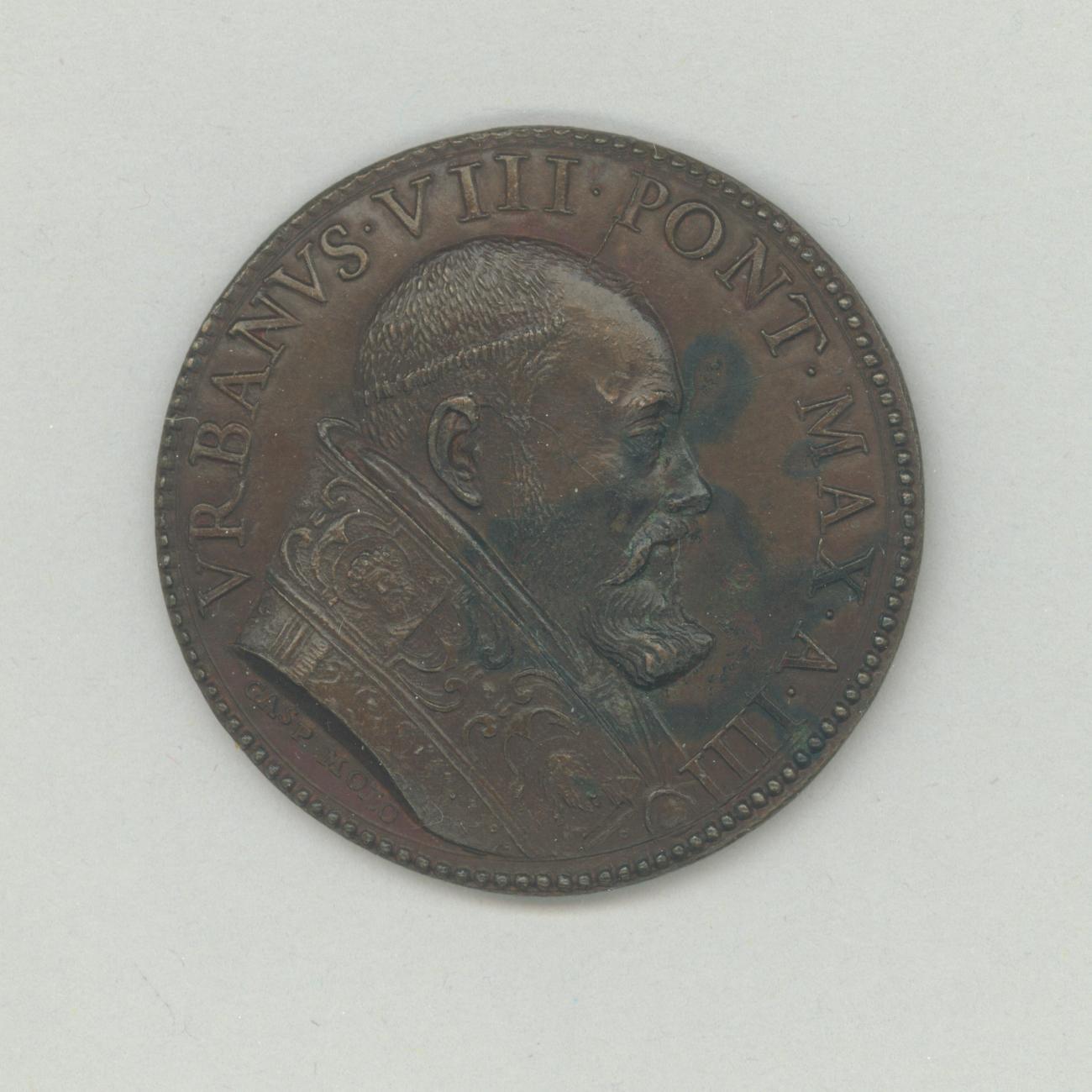 Pauspenning met portret paus Urbanus VIII (1623-1644), kz. H. Deur