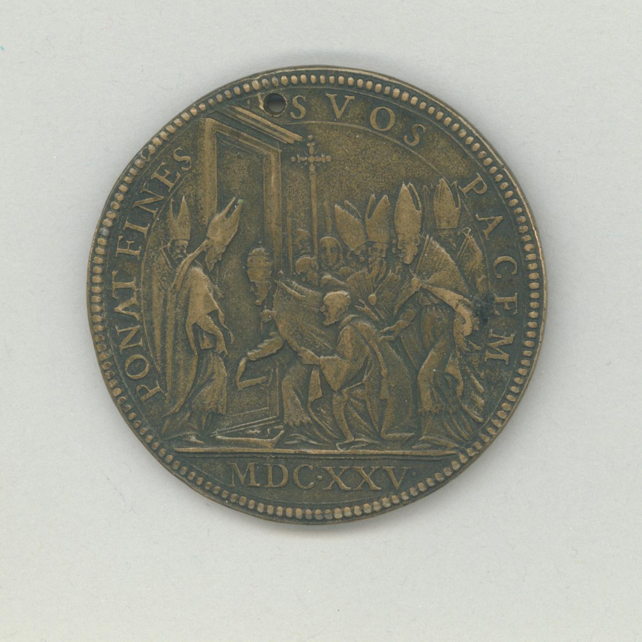 Pauspenning met portret paus Urbanus VIII (1623-1644), kz. paus opent H. Deur