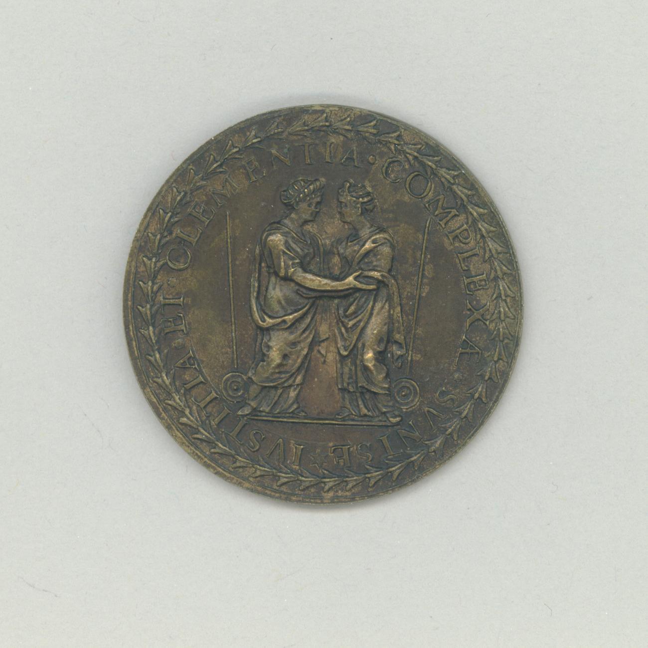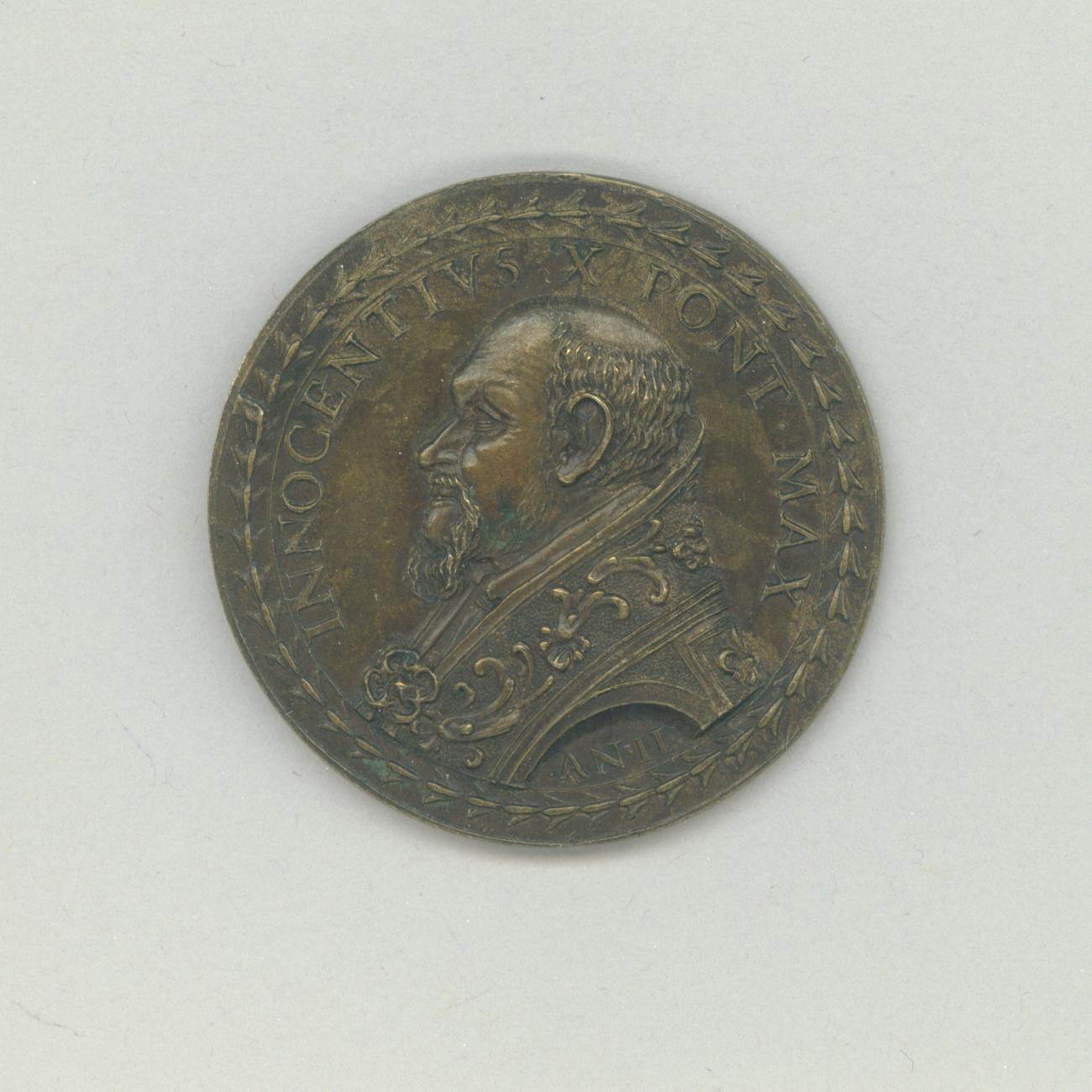 Pauspenning met portret paus Innocentius X (1644-1655), met "... AN II", kz. vrouwen, twee