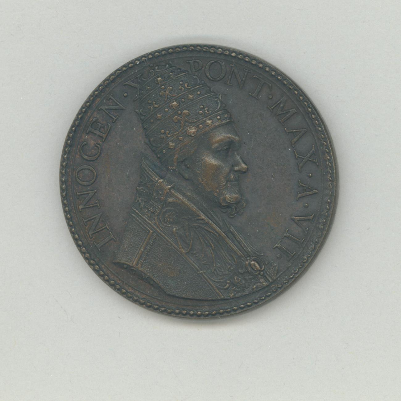 Pauspenning met portret paus Innocentius X (1644-1655), met "... A VII", kz. H. Deur