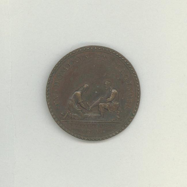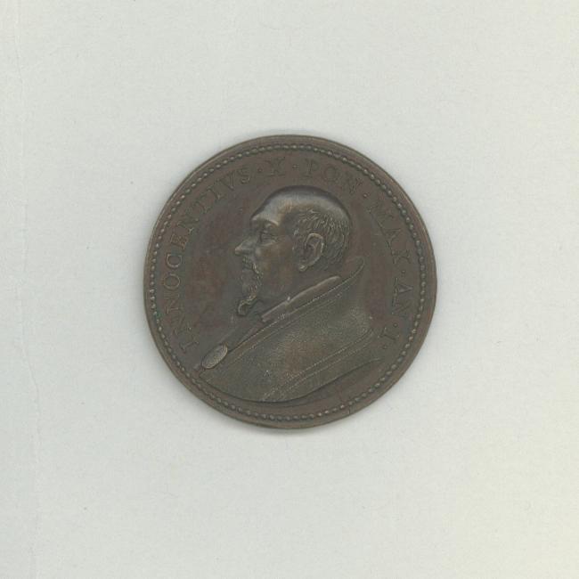 Pauspenning met portret paus Innocentius X (1644-1655), met "... AN I", kz. voetwassing, Christus wast voeten van Petrus