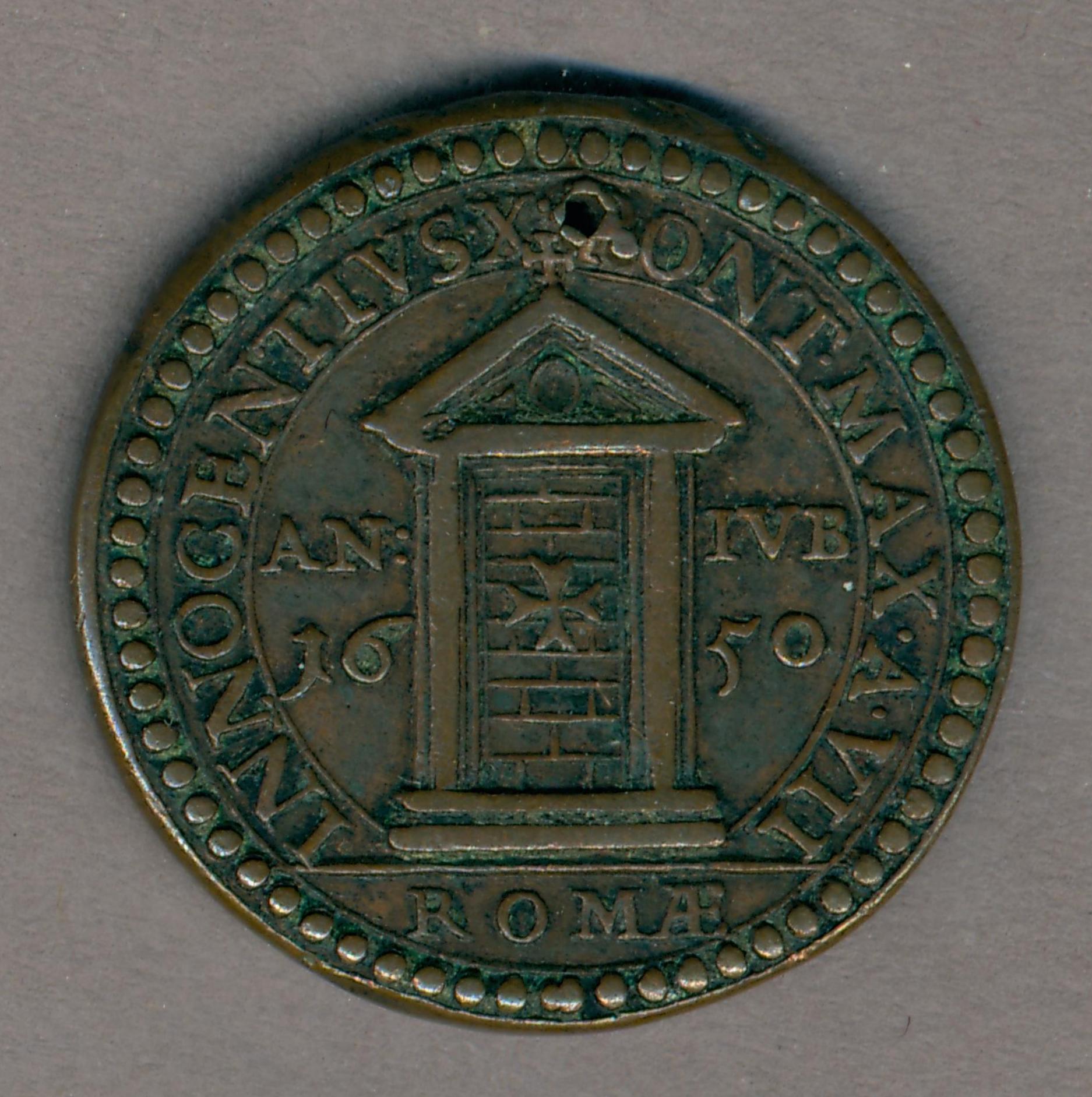 Pauspenning paus Innocentius X (1644-1655) met St. Paulus apostel met aureool, kz. H. Deur