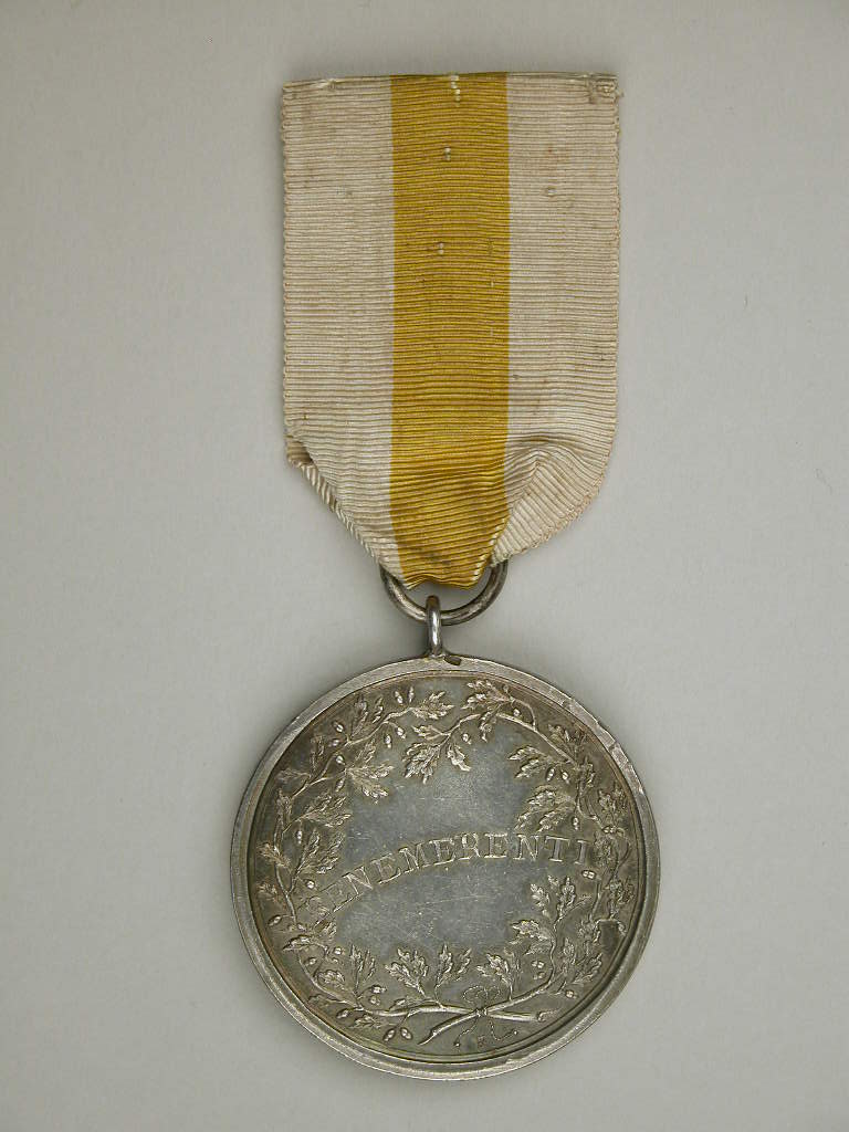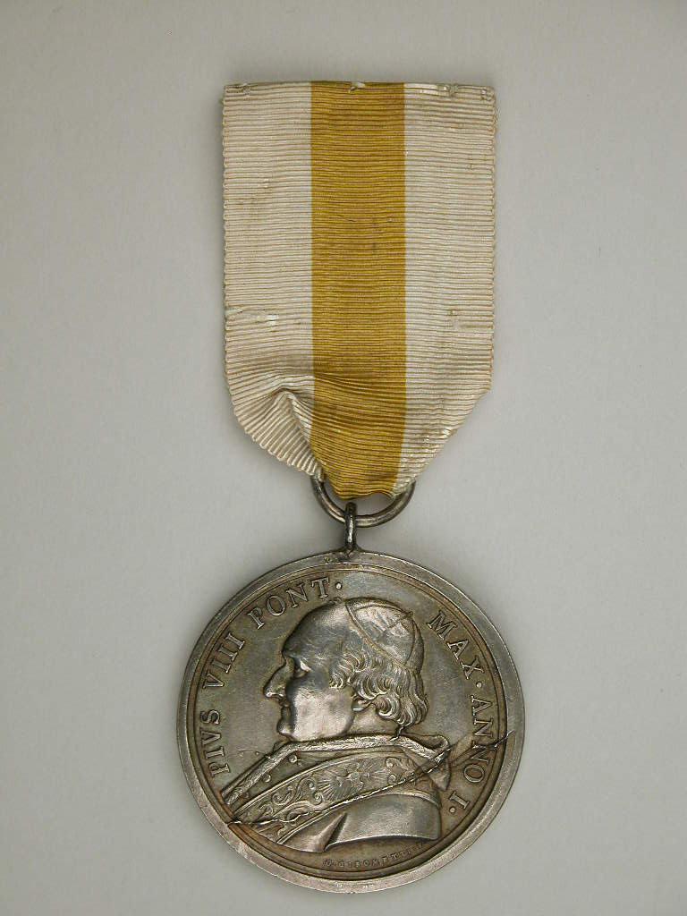 Onderscheiding met portret paus Pius VIII (1829-1830), kz. "Bene Merenti", aan wit-geel lint