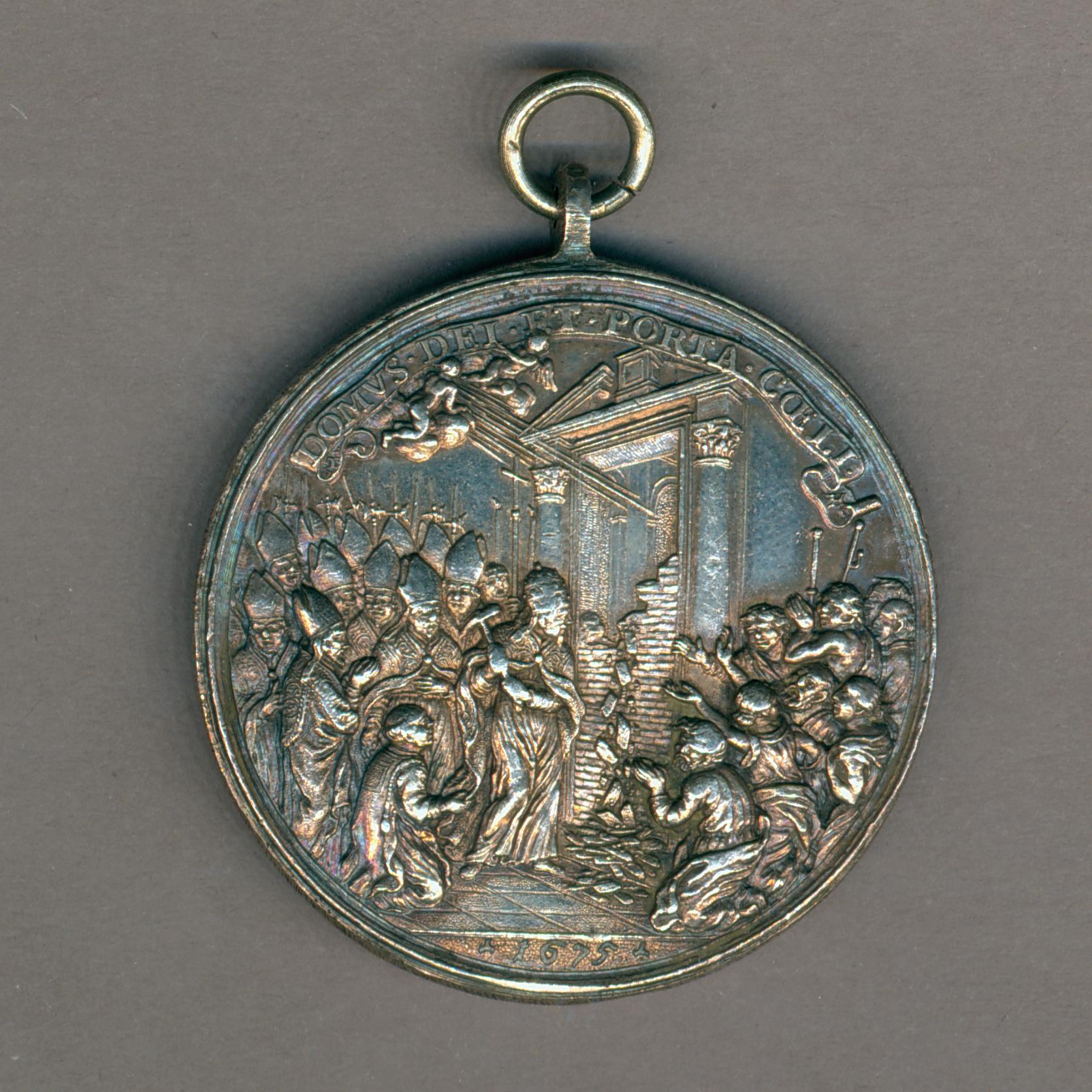 Pauspenning met portret paus Clemens X (1670-1676) met "... AN V", kz. openen van H. Deur