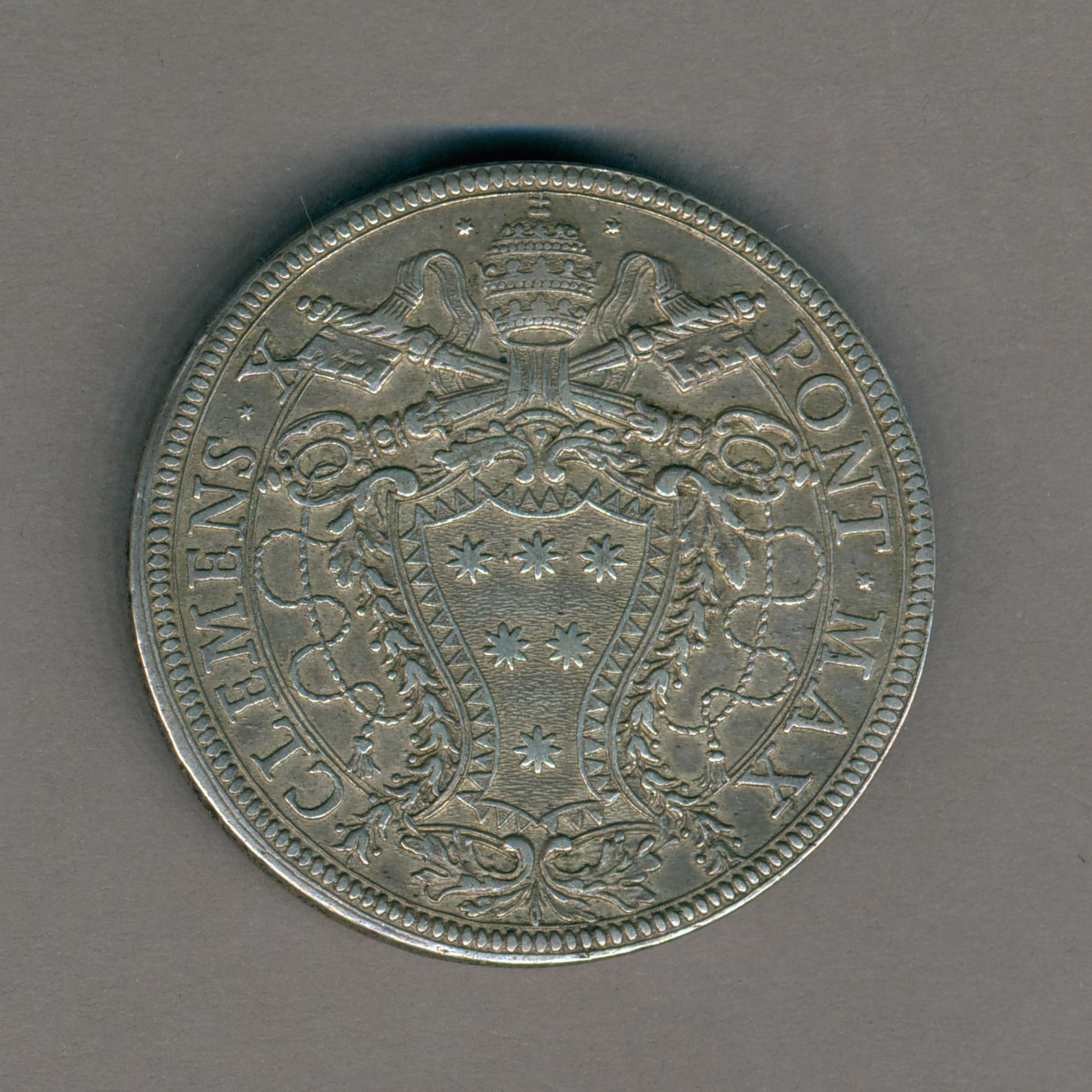 Pauspenning paus Clemens X (1670-1676) met H. Deur, kz. pauselijk wapen