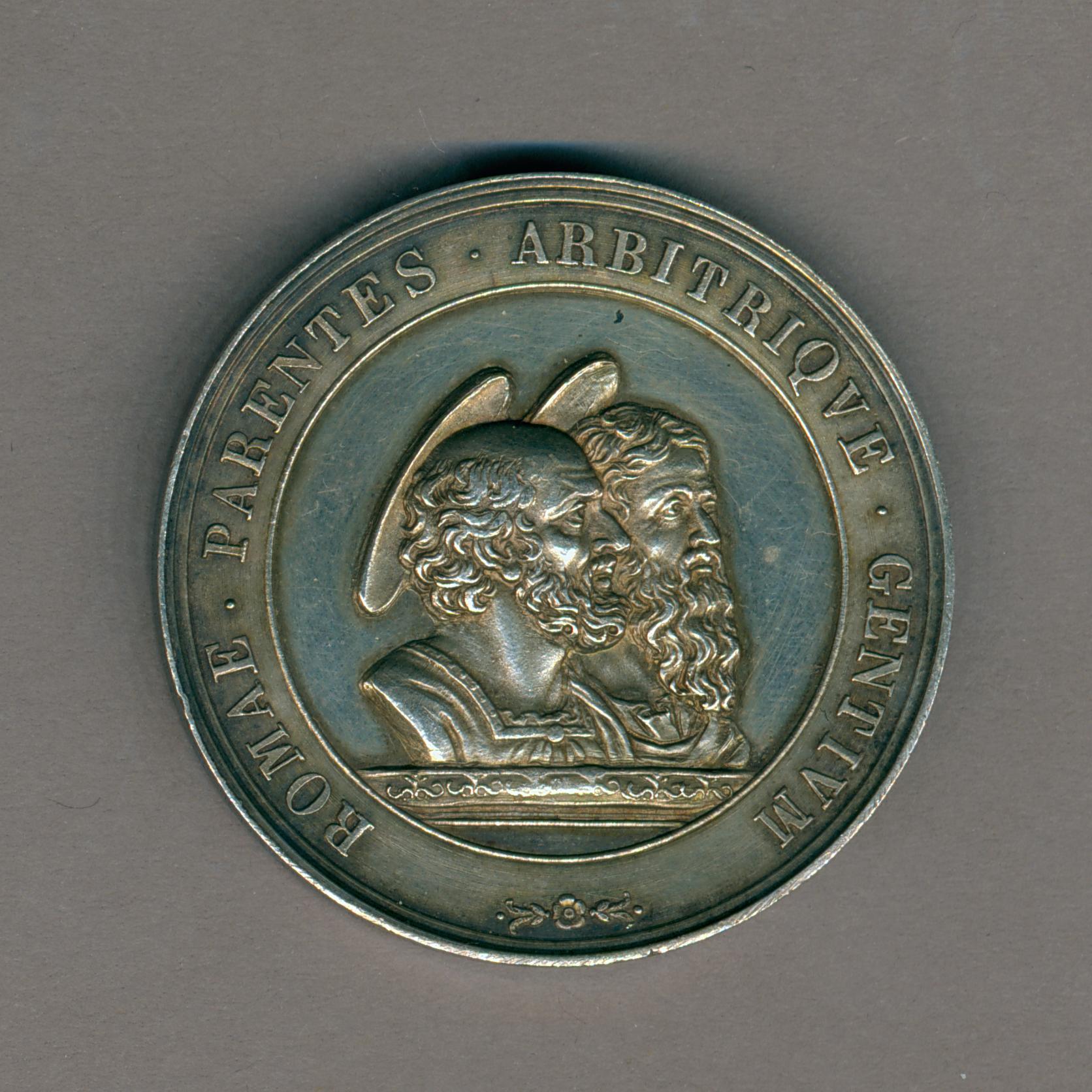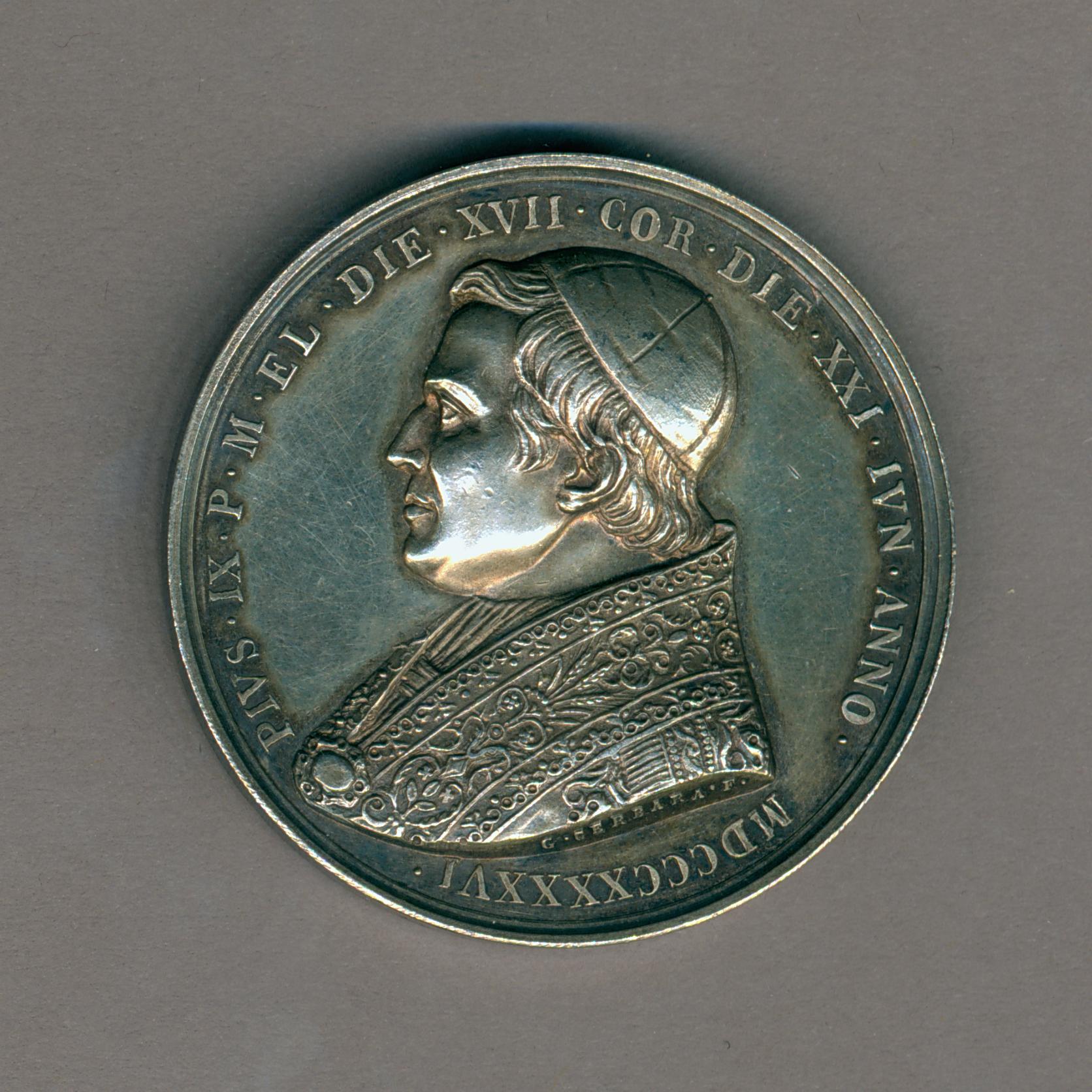 Pauspenning met portret paus Pius IX (1846-1878), kz. St. Petrus en St. Paulus met aureool
