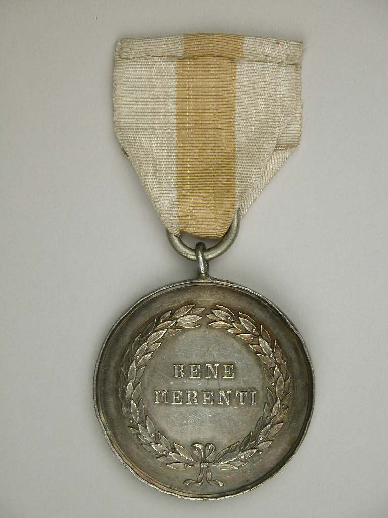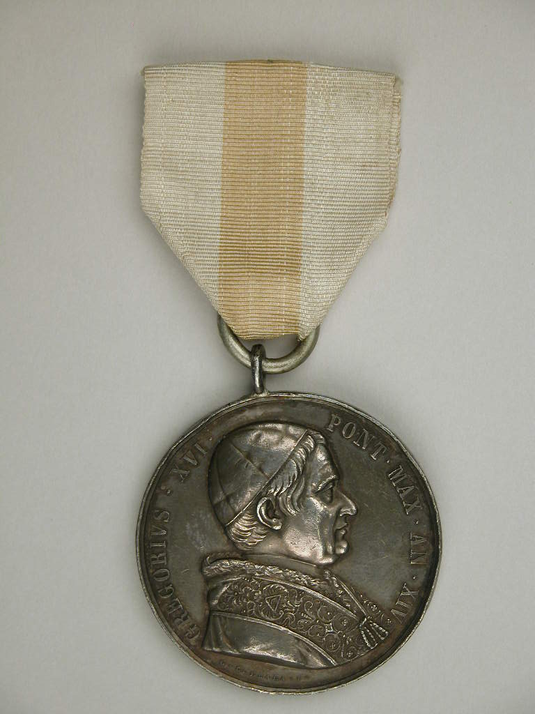 Onderscheiding met portret Gregorius XVI (1831-1846), kz. "Bene Merenti", aan wit-geel lint