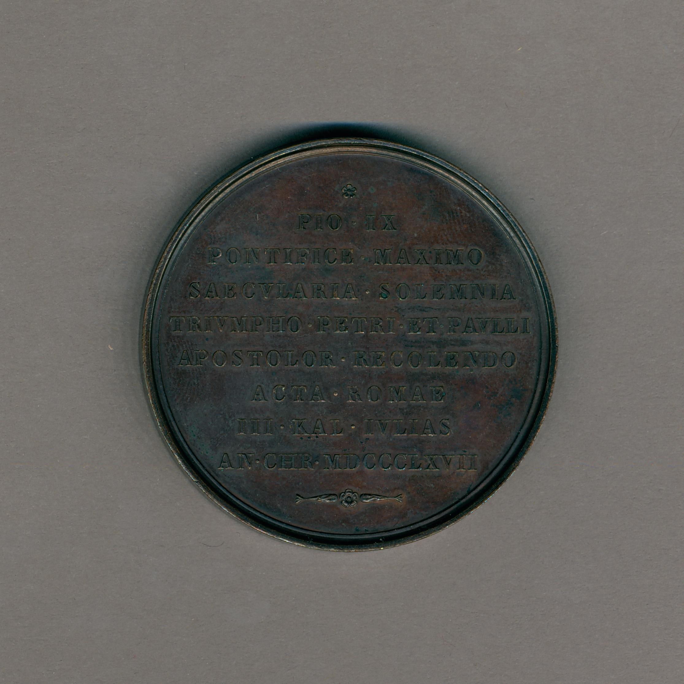 Pauspenning paus Pius IX (1846-1878) met St. Petrus en St. Paulus met aureool, kz. met "Pio IX ... MDCCCLXVII"