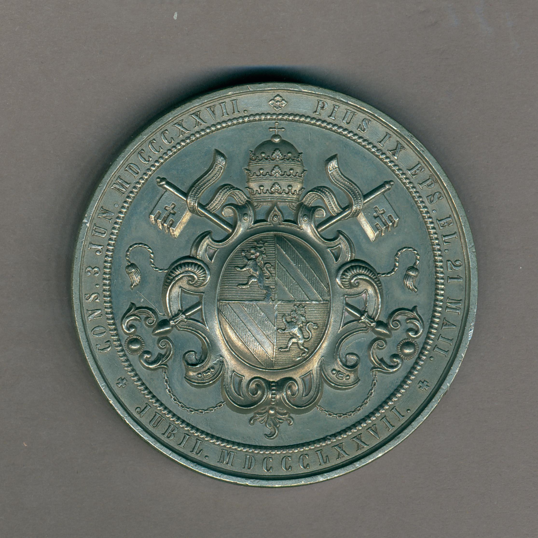 Pauspenning t.g.v. 50-jarig aartsbisschopsjubileum met portret paus Pius IX (1846-1878), kz. pauselijk wapen