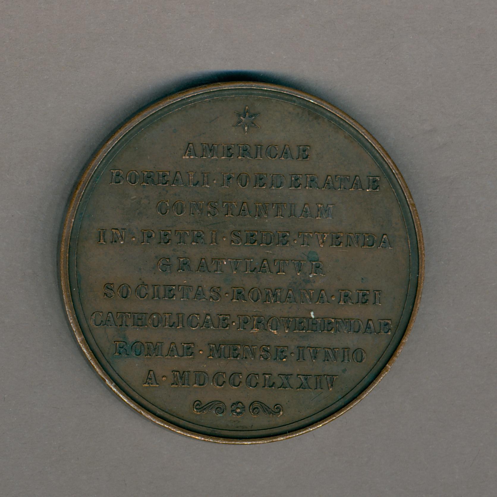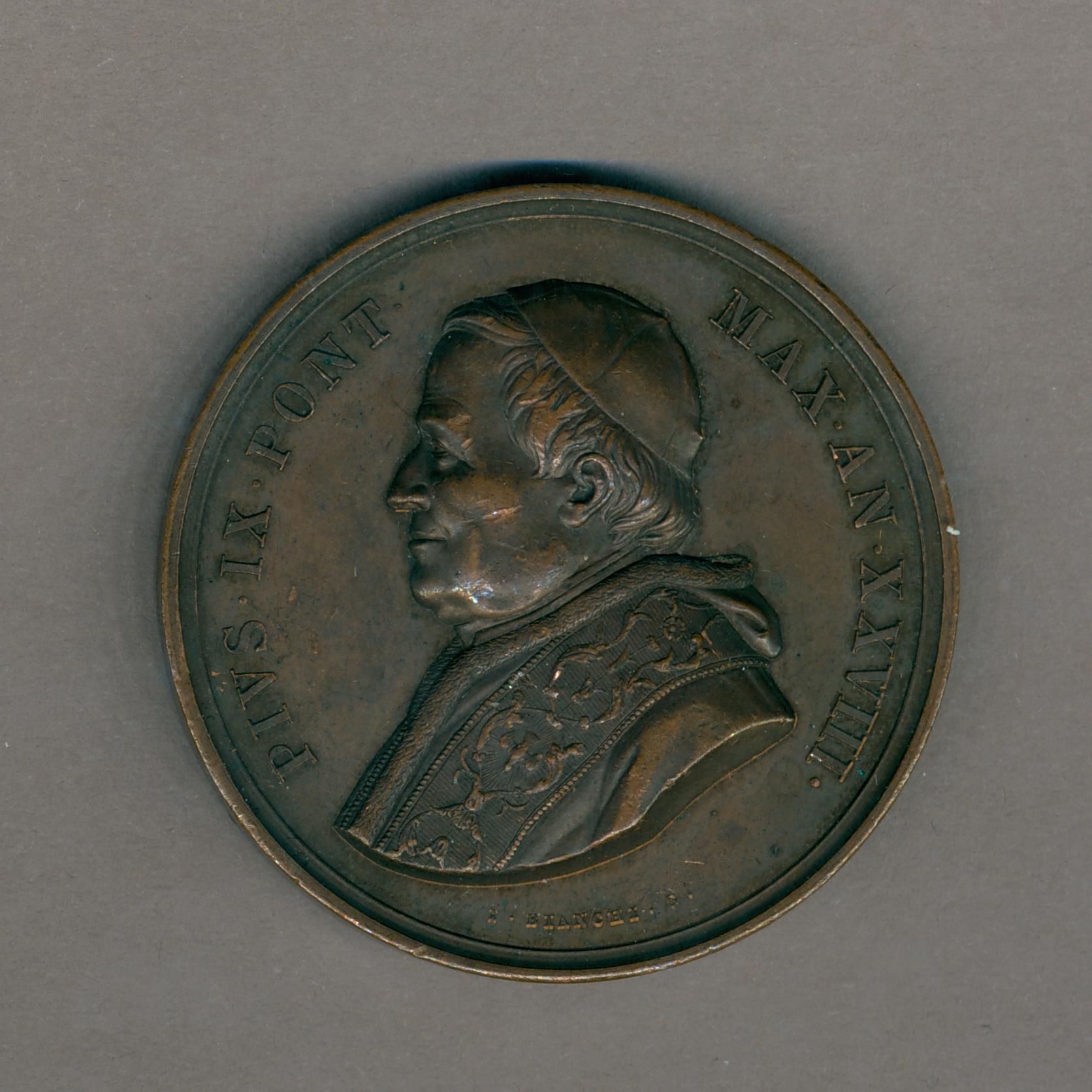 Pauspenning met portret paus Pius IX (1846-1878), kz. met "Americae boreali ... MDCCCLXXIV"