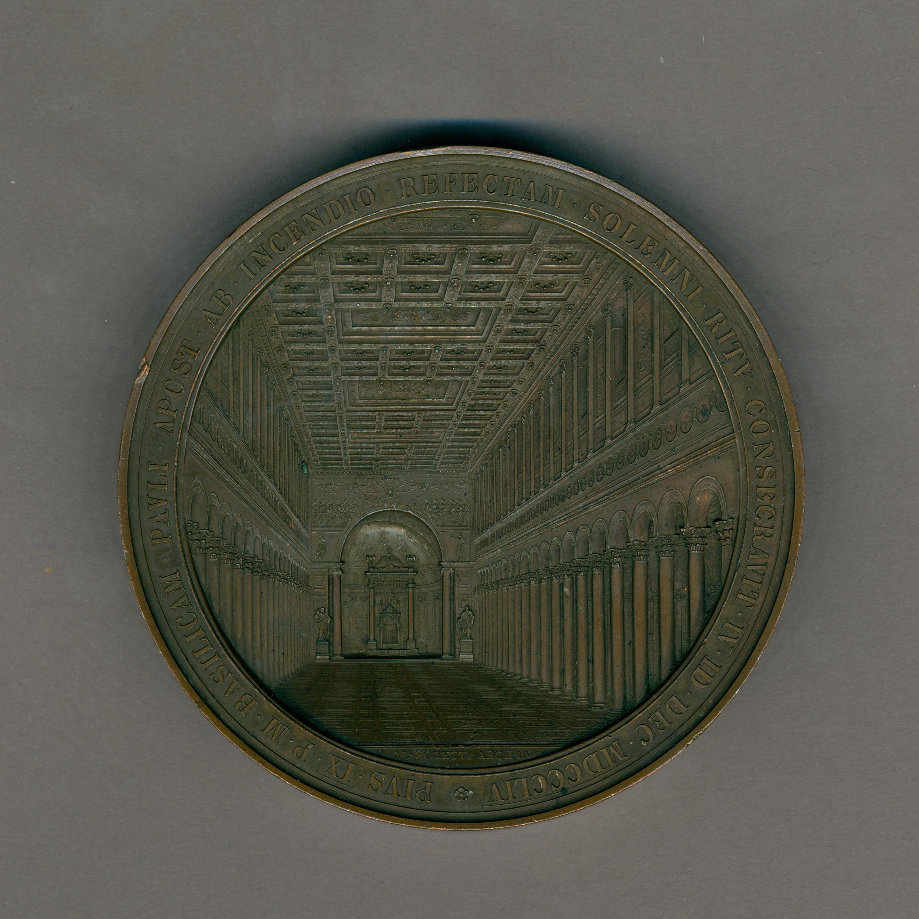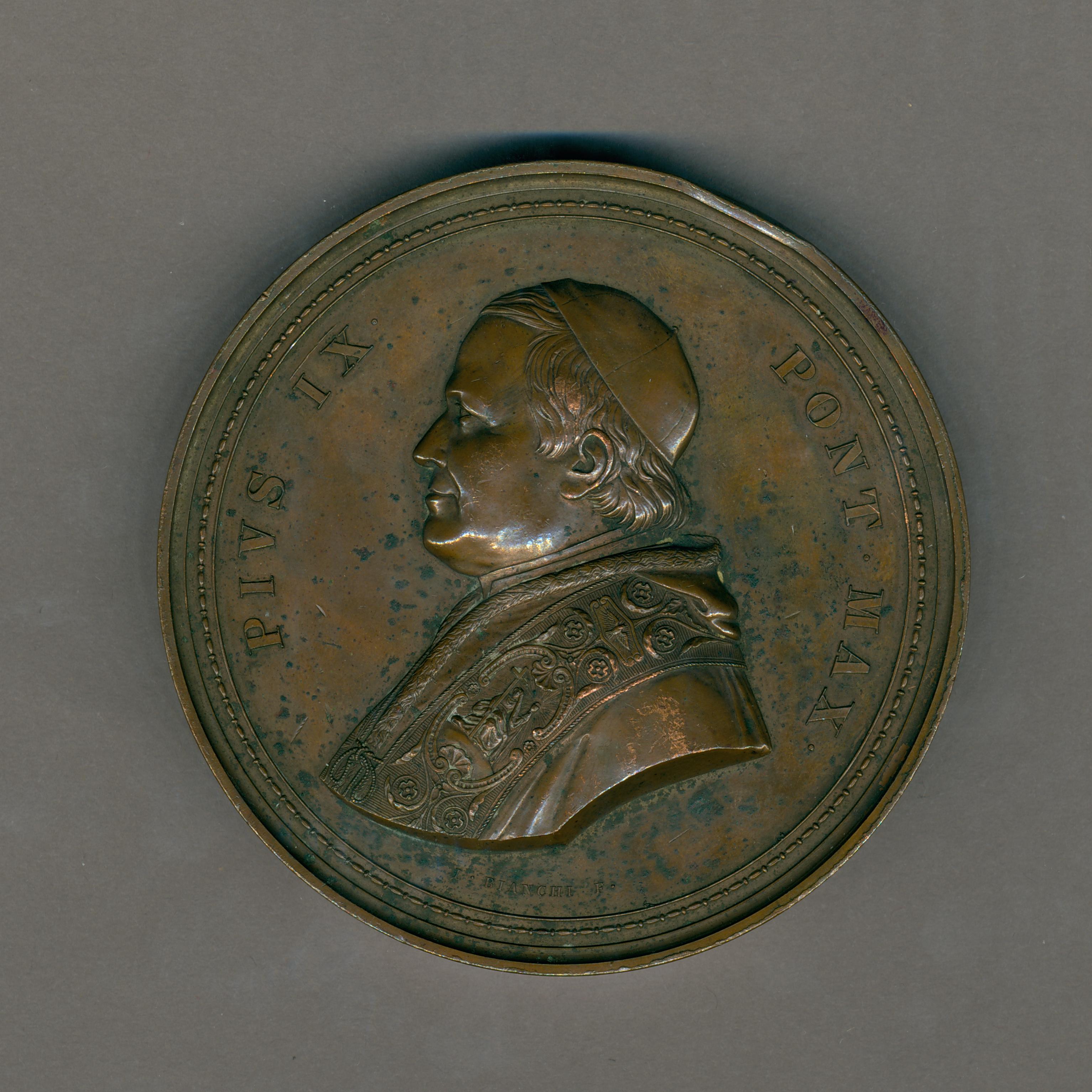 Pauspenning met portret paus Pius IX (1846-1878), kz. St. Paulus basiliek wederopgebouwd na verwoesting brand