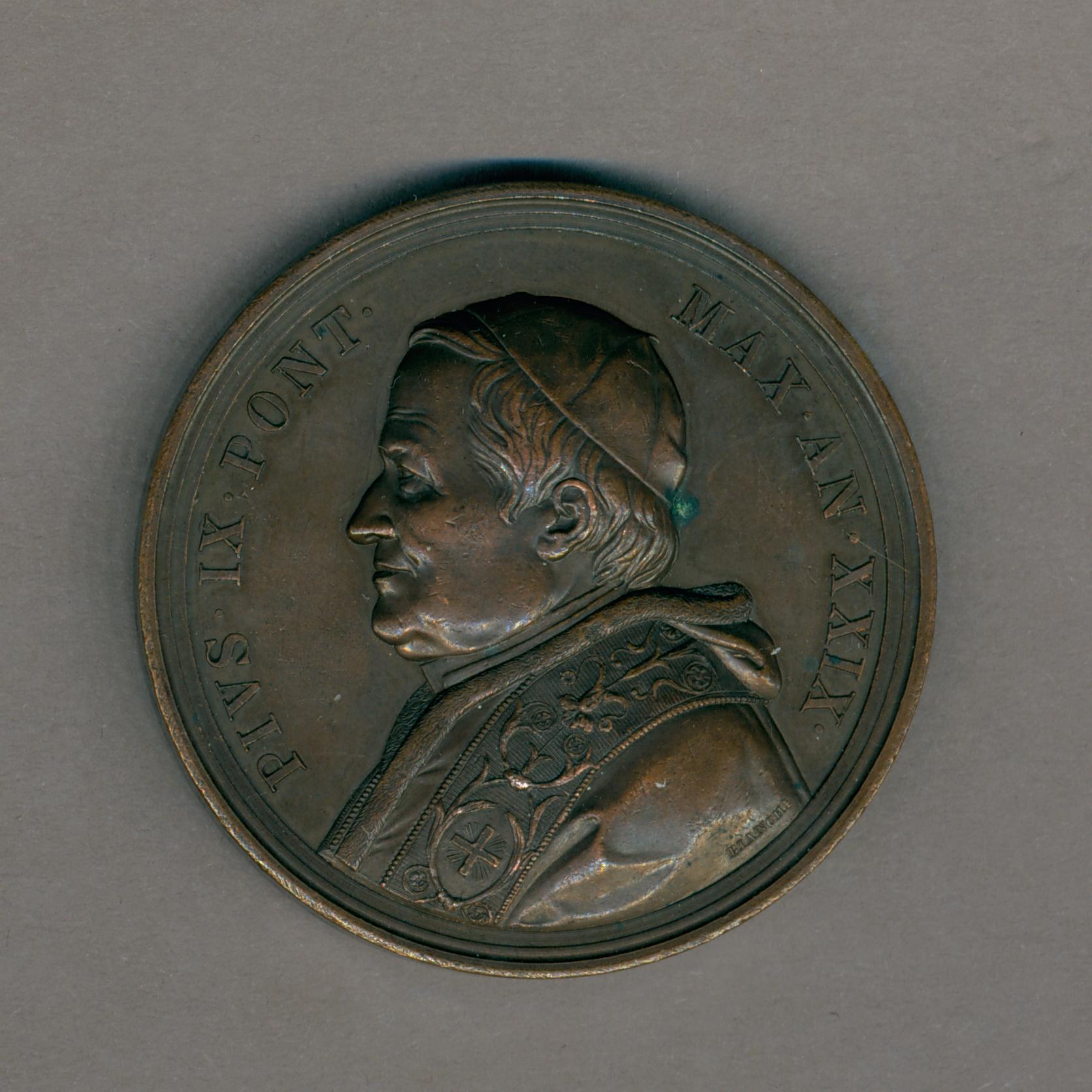 Pauspenning met portret paus Pius IX (1846-1878), kz. interieur basiliek