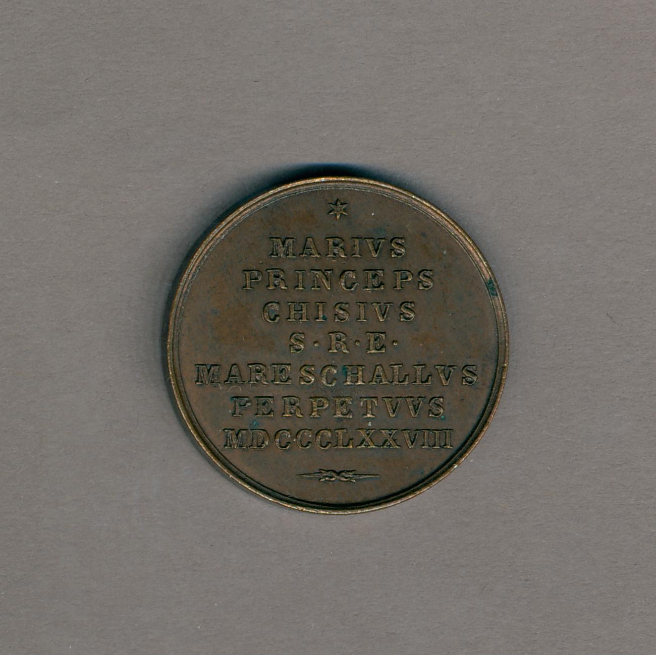 Pauspenning met pauselijk wapen paus Pius IX (1846-1878), kz. met "Marius Princeps Cisius ... mareschallus perpetuus MDCCCLXXVIII"