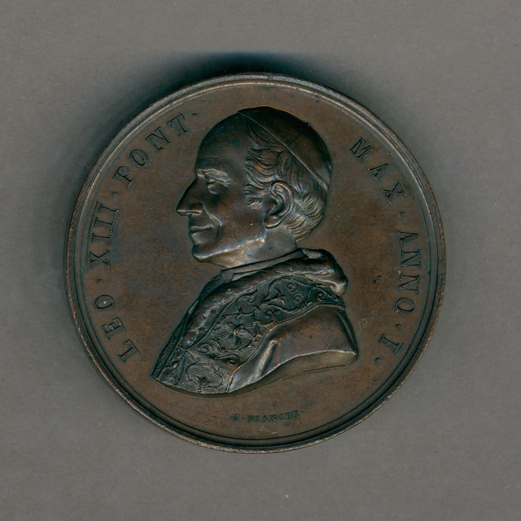 Pauspenning met portret paus Leo XIII (1878-1903), met "... ANNO I", kz. pauselijk wapen