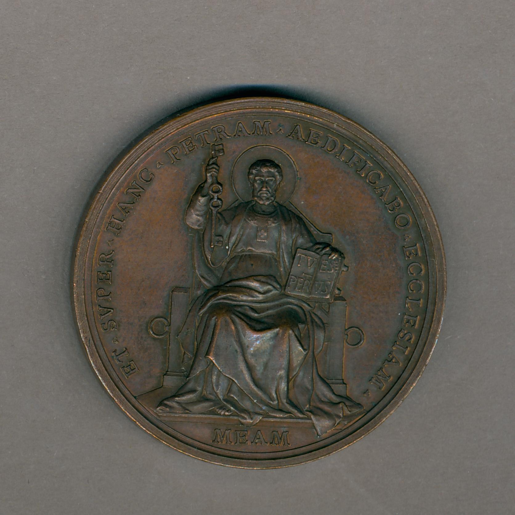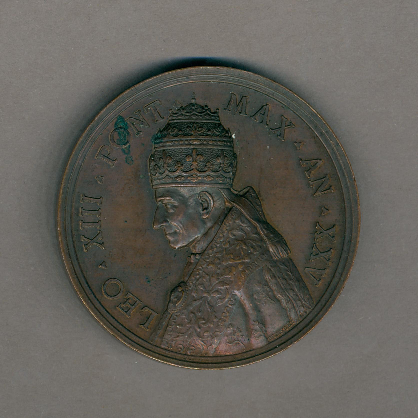 Pauspenning met portret paus Leo XIII (1878-1903), met "... AN XXV", kz. Petrus, gezeten, met sleutels in zijn rechterhand en boek in zijn linkerhand