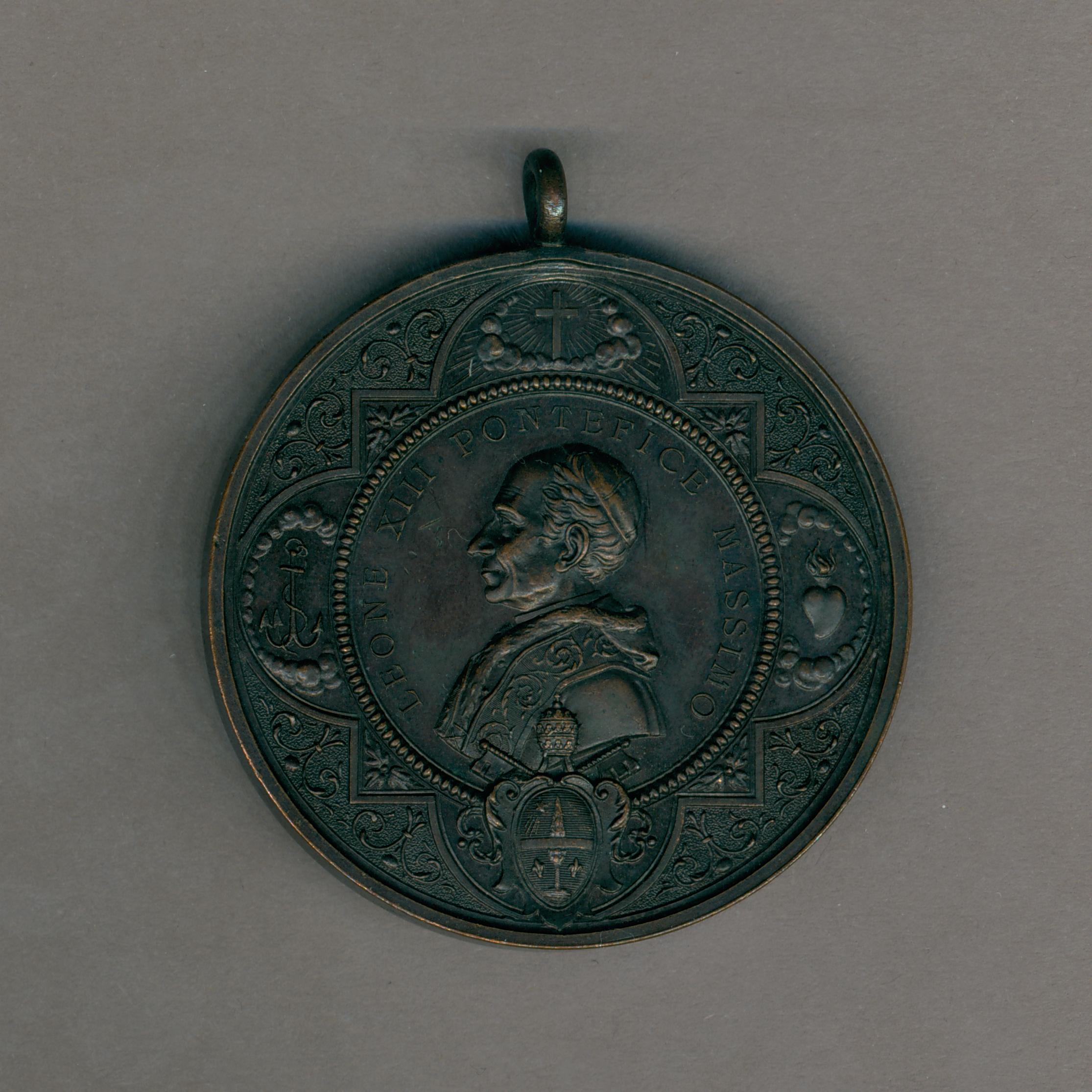 Pauspenning met portret paus Leo XIII (1878-1903), kz. opschrift en pauselijk wapen