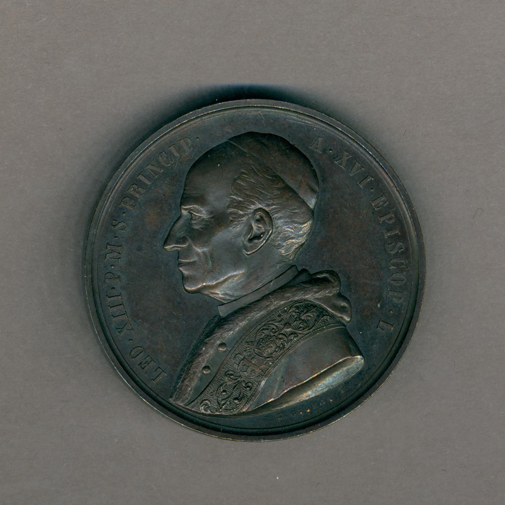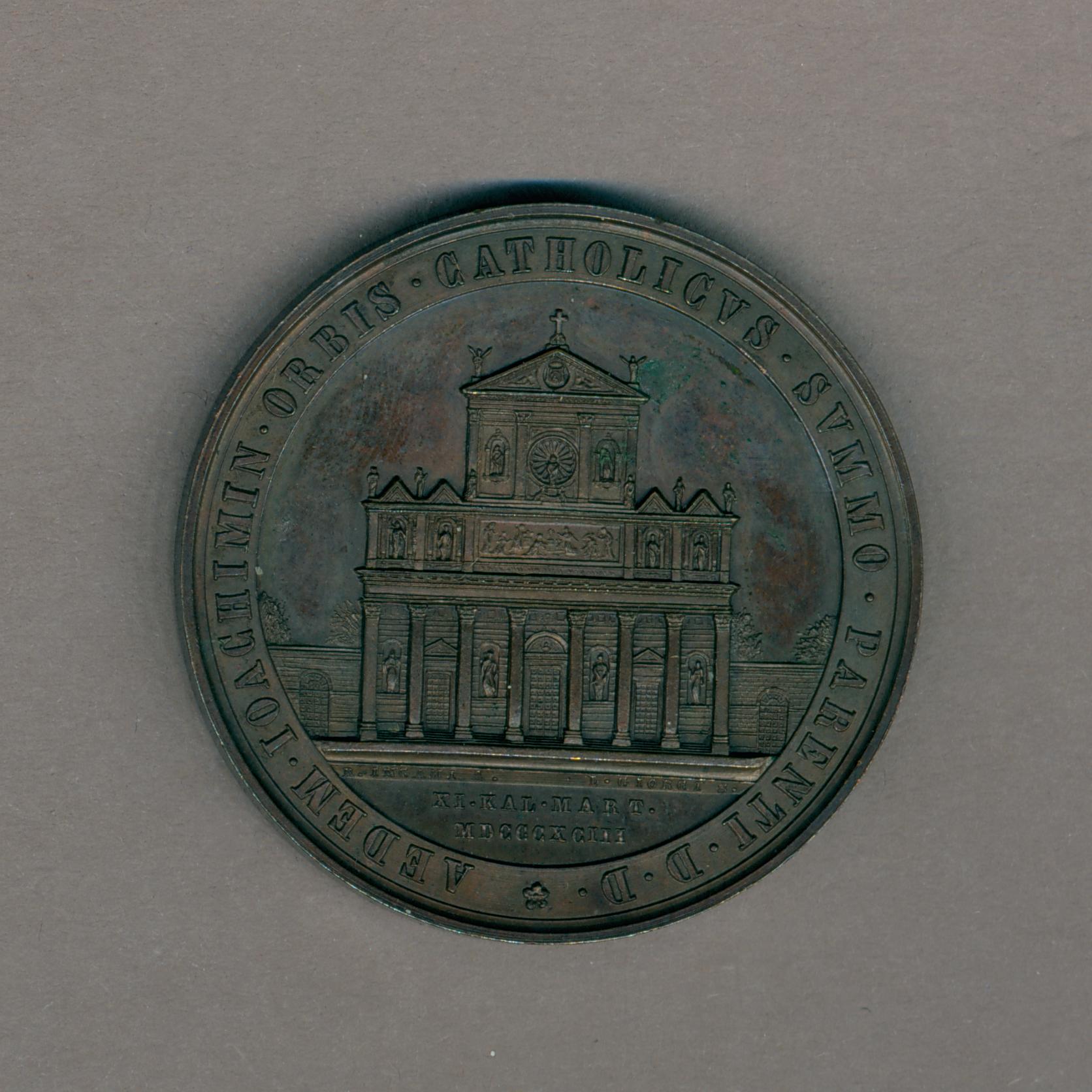 Pauspenning met portret paus Leo XIII (1878-1903), kz. voorgevel kerk Sint Joachim in de velden van de Engelenburcht, Rome