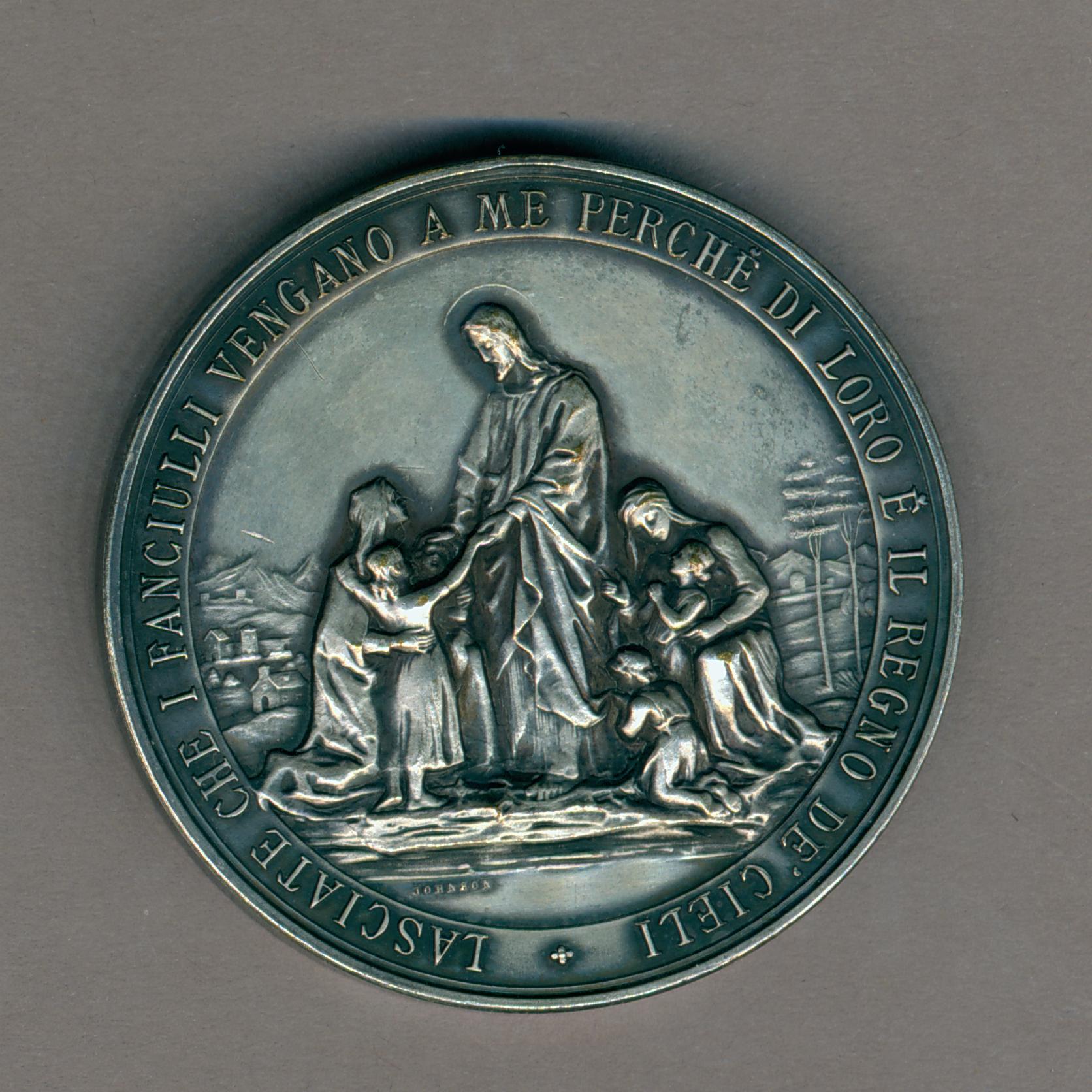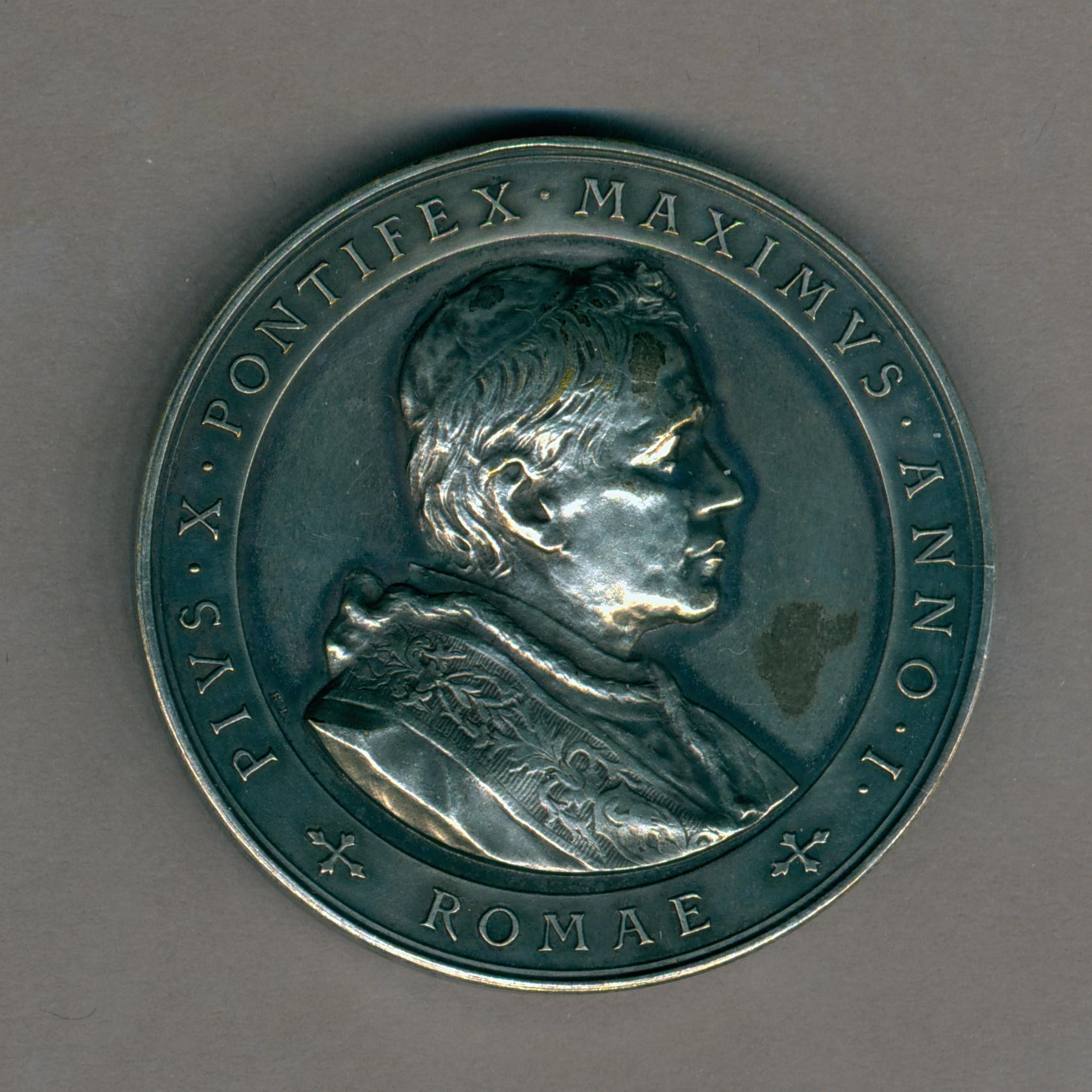 Pauspenning met portret paus Pius X (1903-1914), met "... ANNO I", kz. Christus temidden van kinderen, landschap