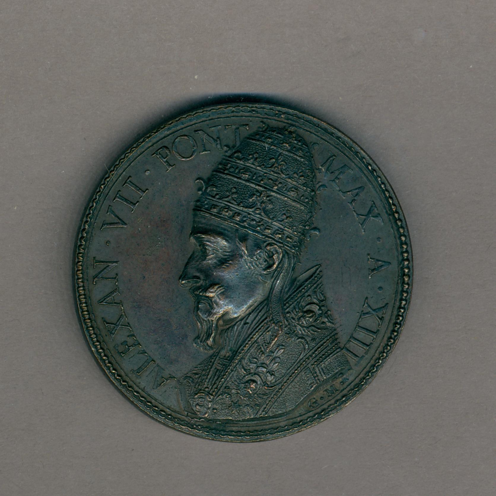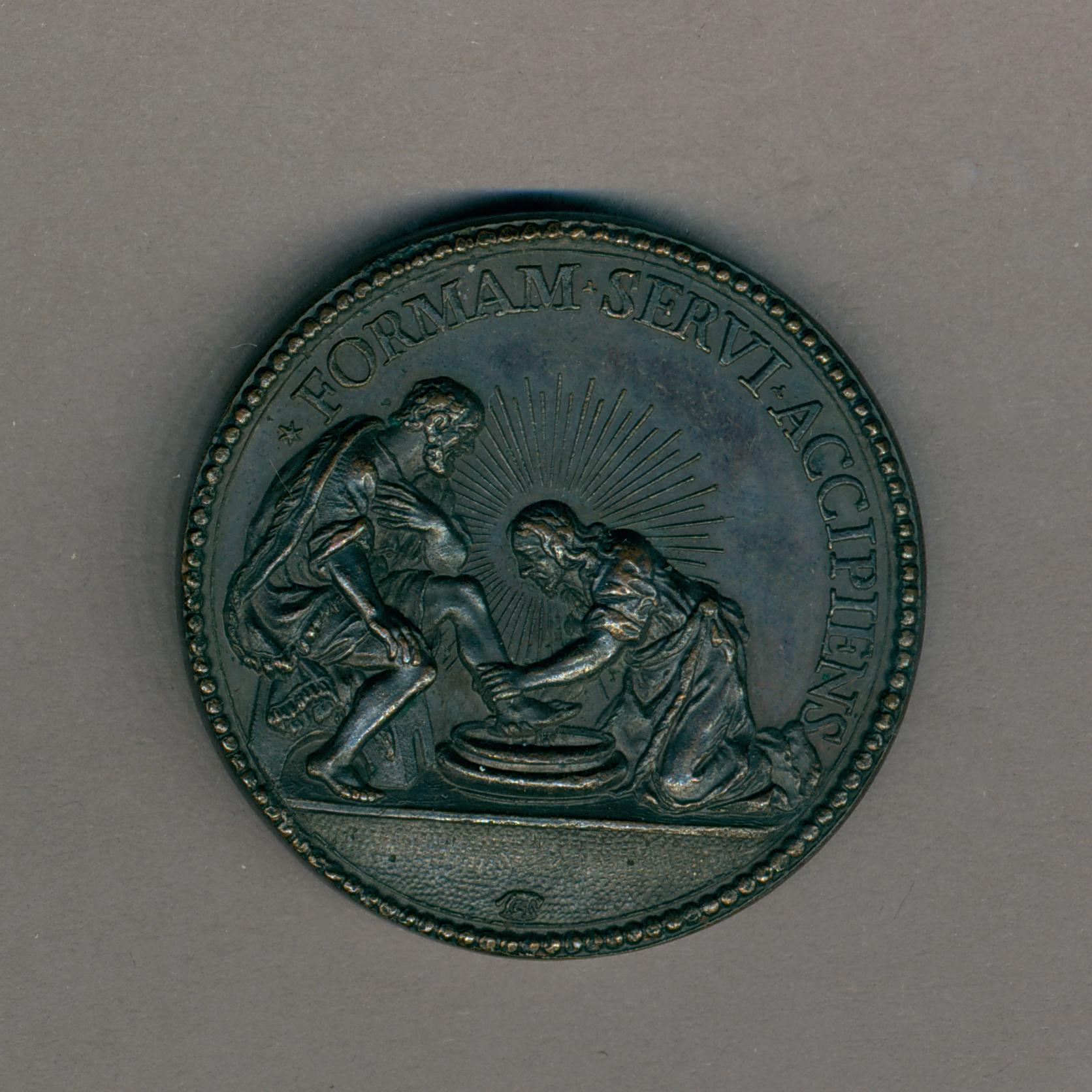 Pauspenning met portret paus Alexander VII (1655-1667), met "... A XIII", kz. voetwassing, Christus wast voeten van Petrus