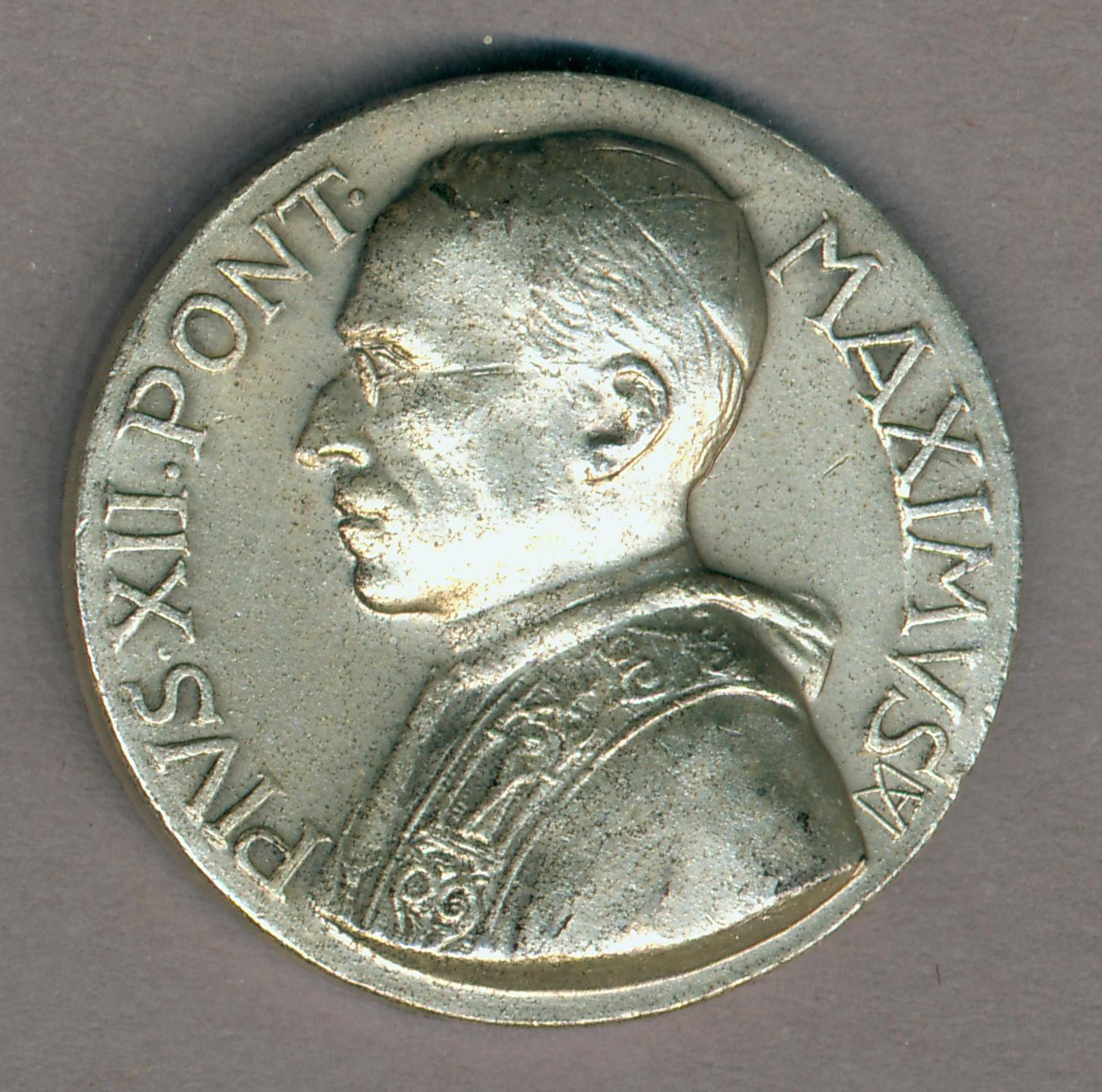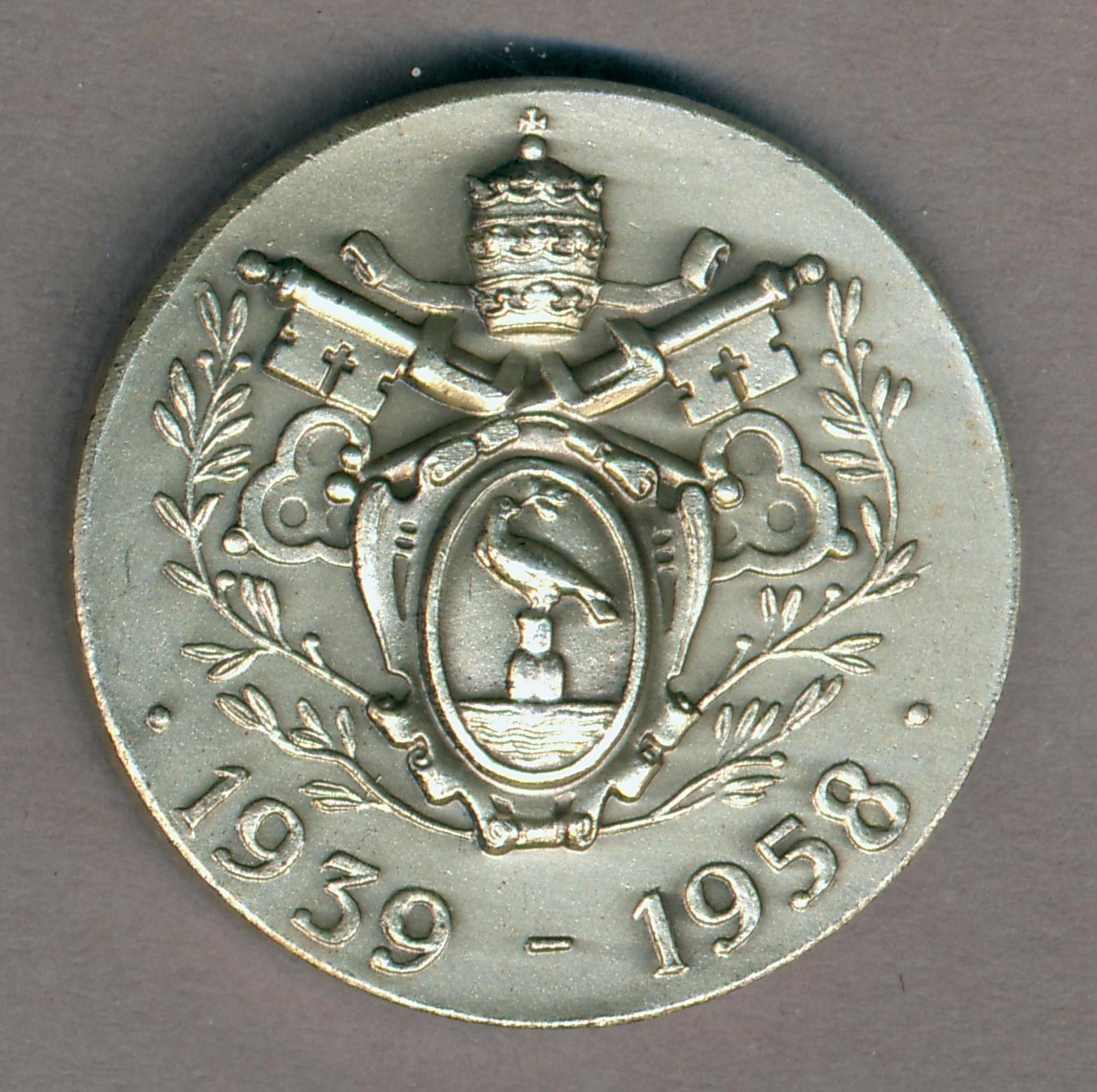 Pauspenning met portret paus Pius XII (1939-1958), kz. pauselijk wapen