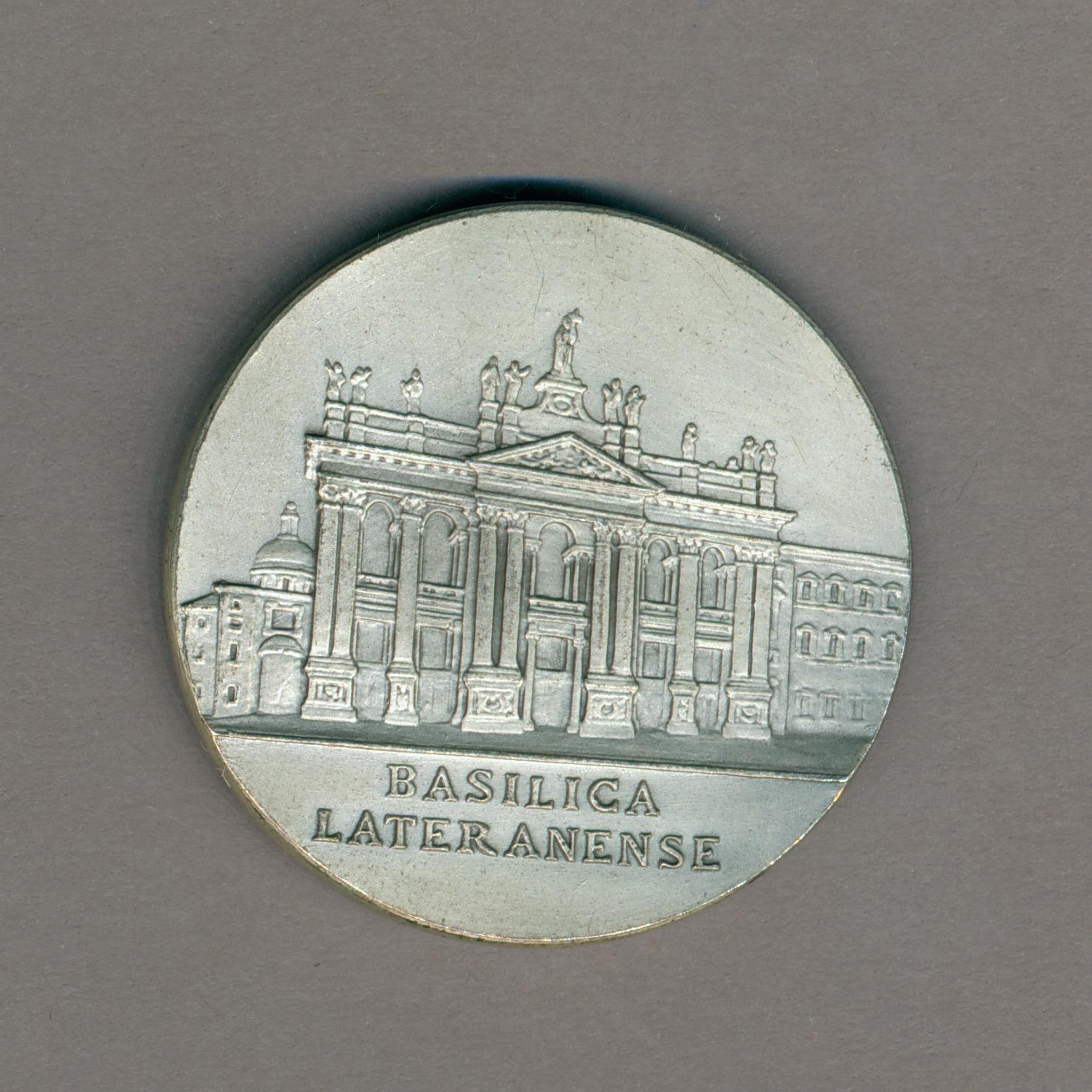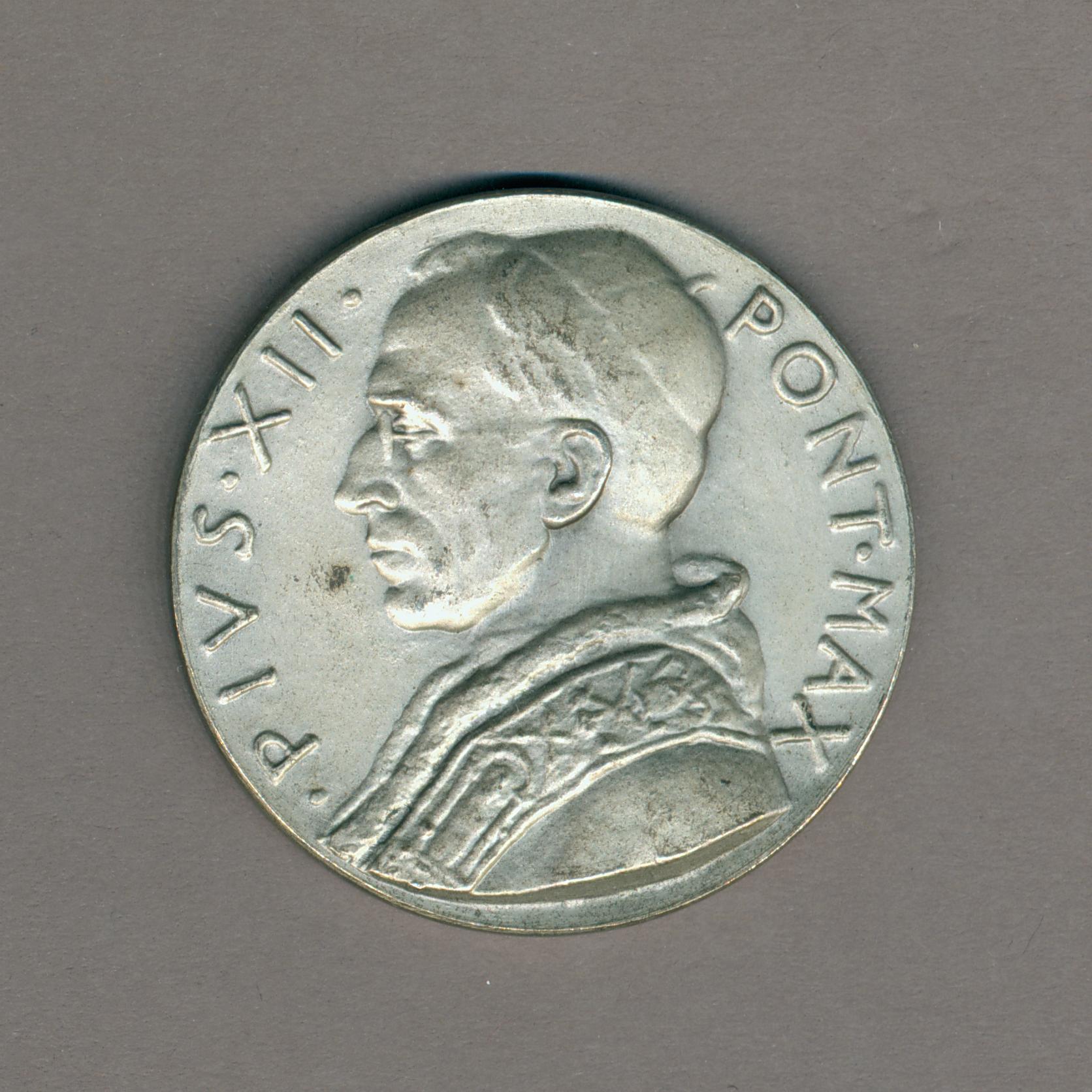 Pauspenning met portret paus Pius XII (1939-1958), kz. facade Sint-Jan van Lateranen te Rome
