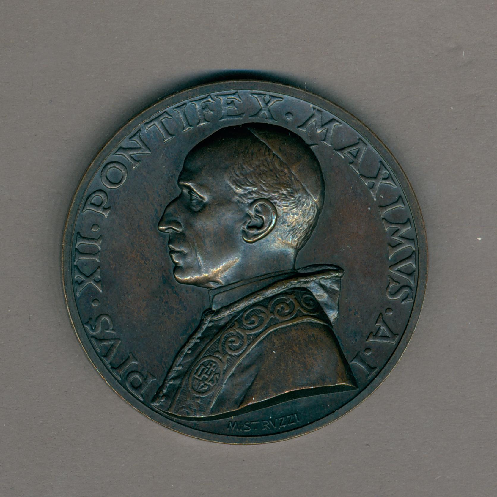 Pauspenning met portret paus Pius XII (1939-1958), kz. pauselijk wapen