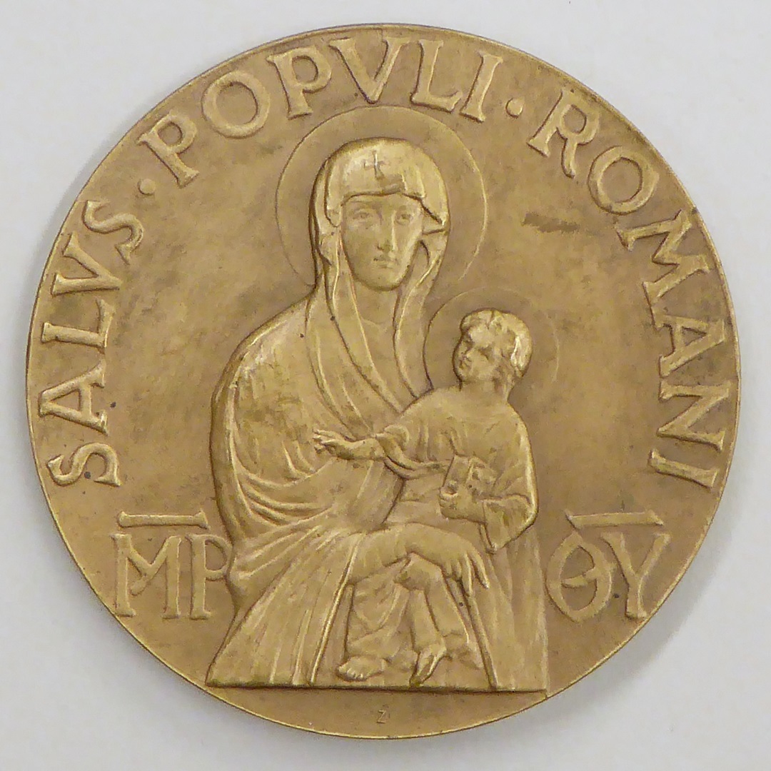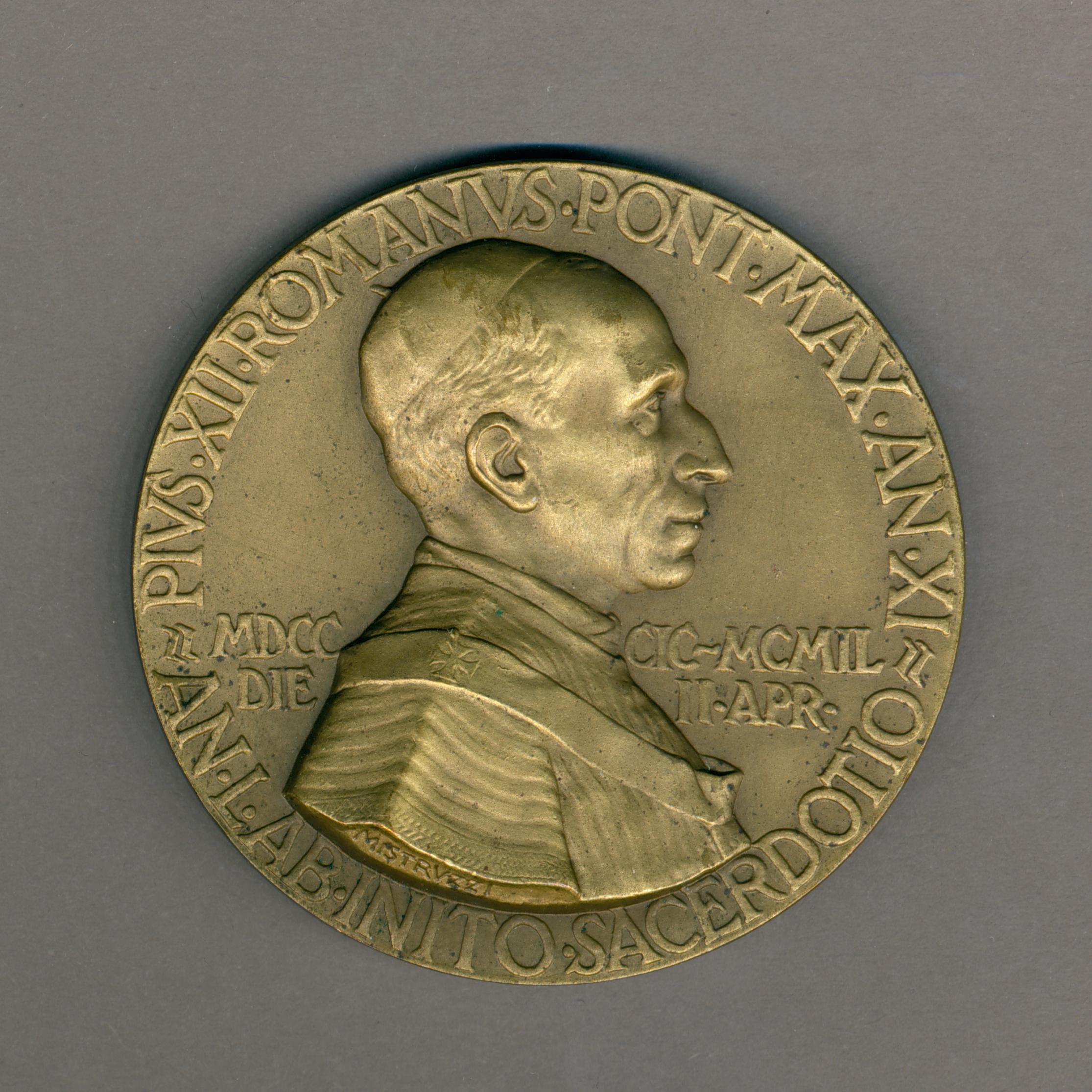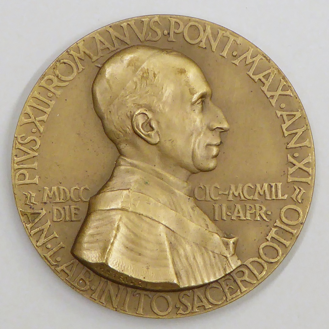 Pauspenning met portret paus Pius XII (1939-1958), kz. Maria met kind, ter gelegenheid van het vijftig-jarig priesterschap