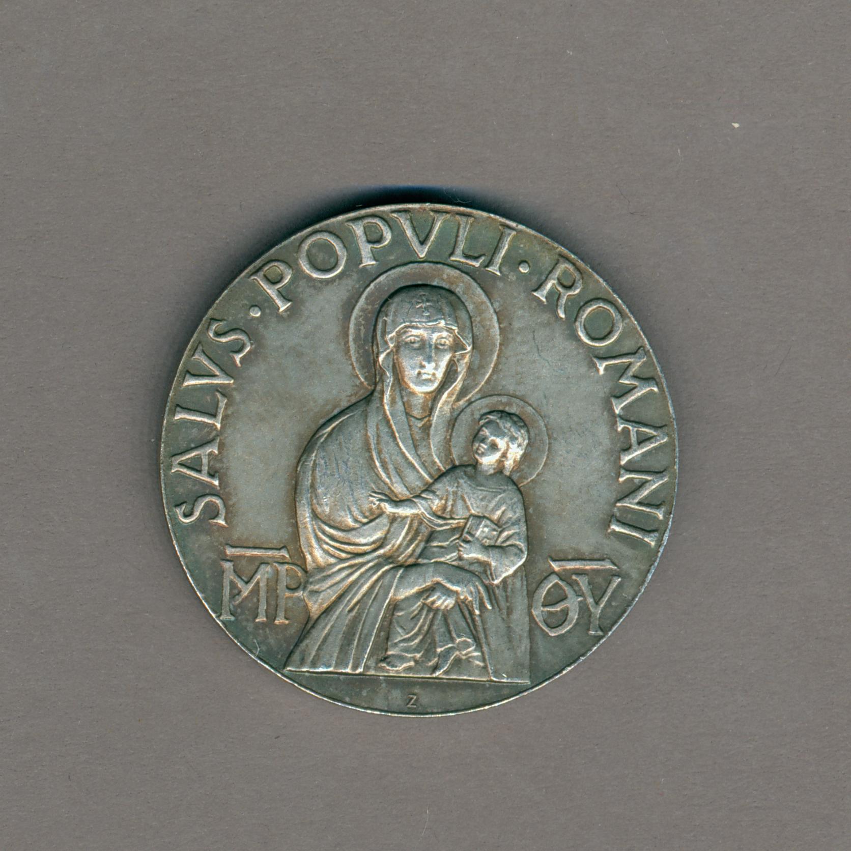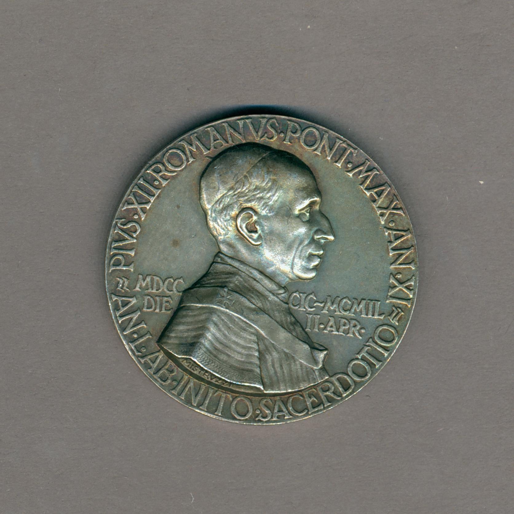 Pauspenning met portret paus Pius XII (1939-1958), kz. Maria met kind, ter gelegenheid van het vijftig-jarig priesterschap