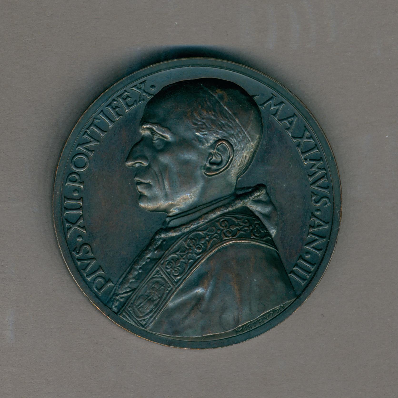 Pauspenning met portret paus Pius XII (1939-1958), met "... AN III", kz. Christus, staand, met vier omstanders, Christus ontfermt zich over hen
