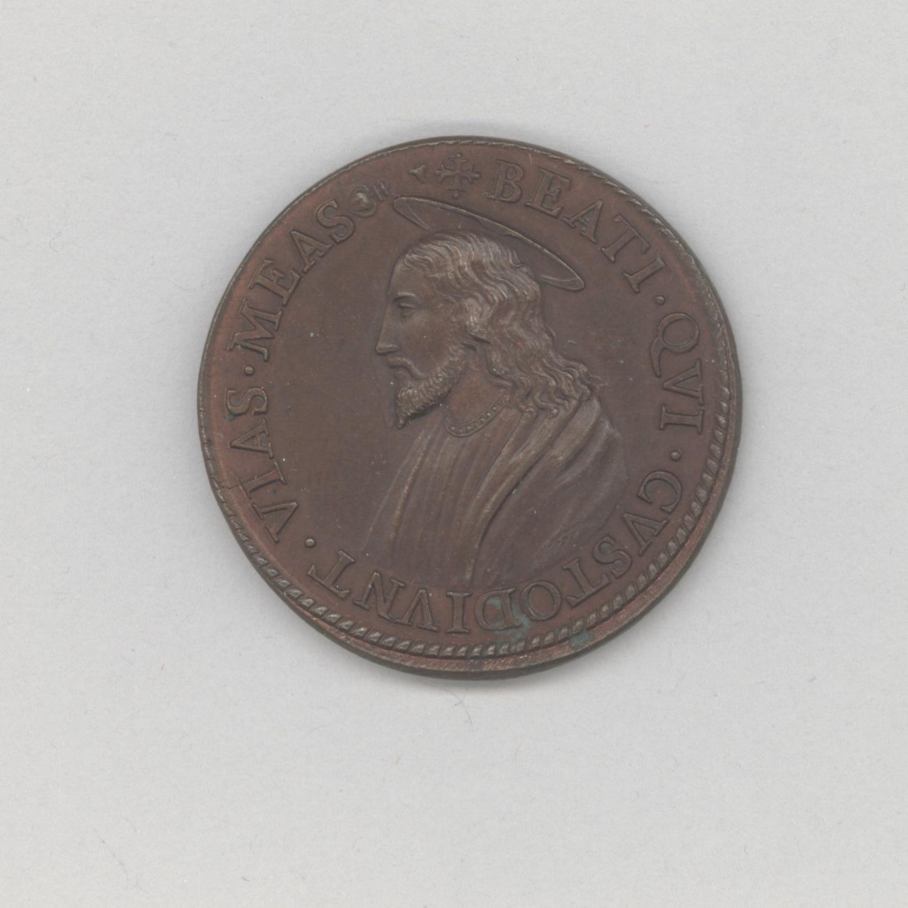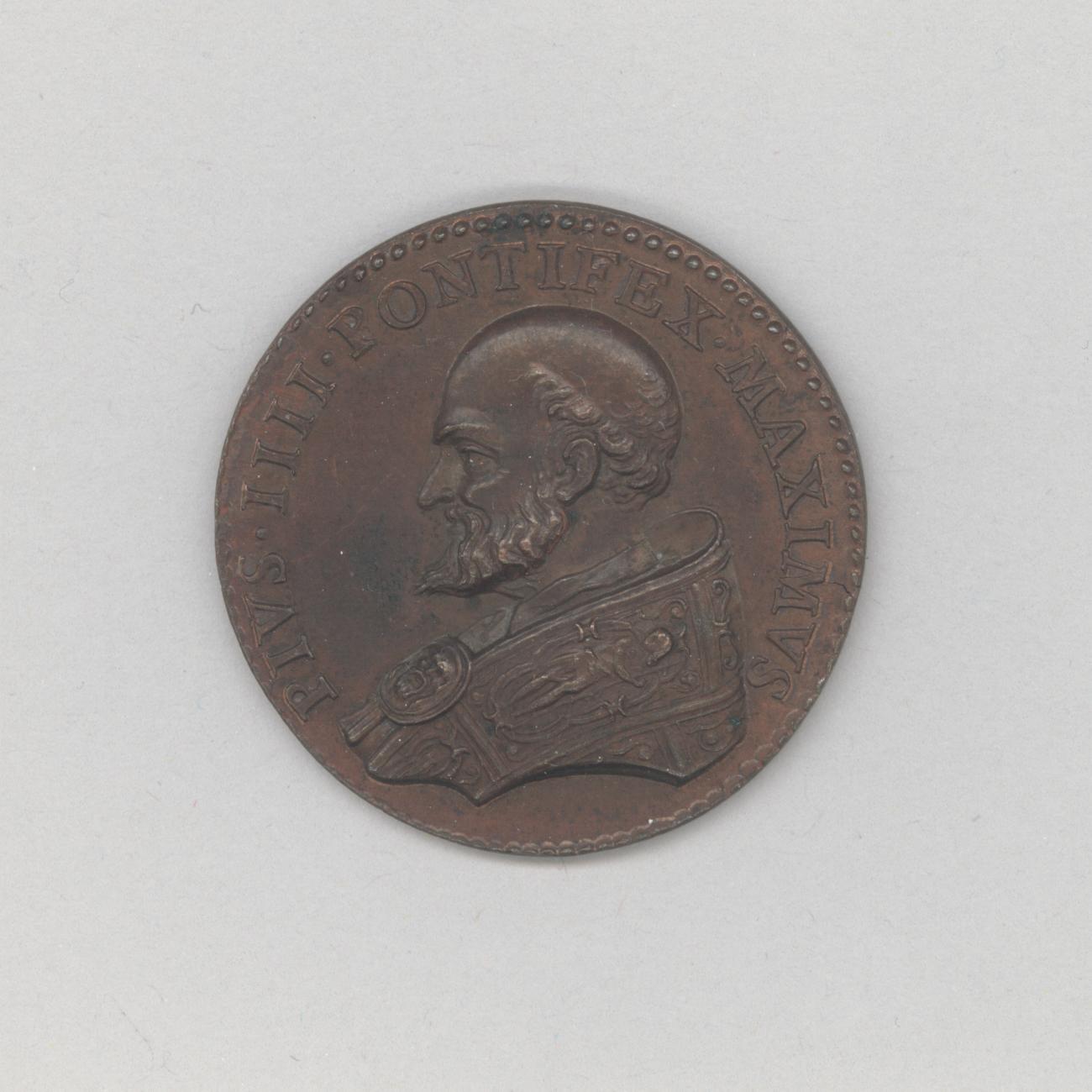 Pauspenning met portret paus Pius IV (1559-1565), kz. Christus met aureool