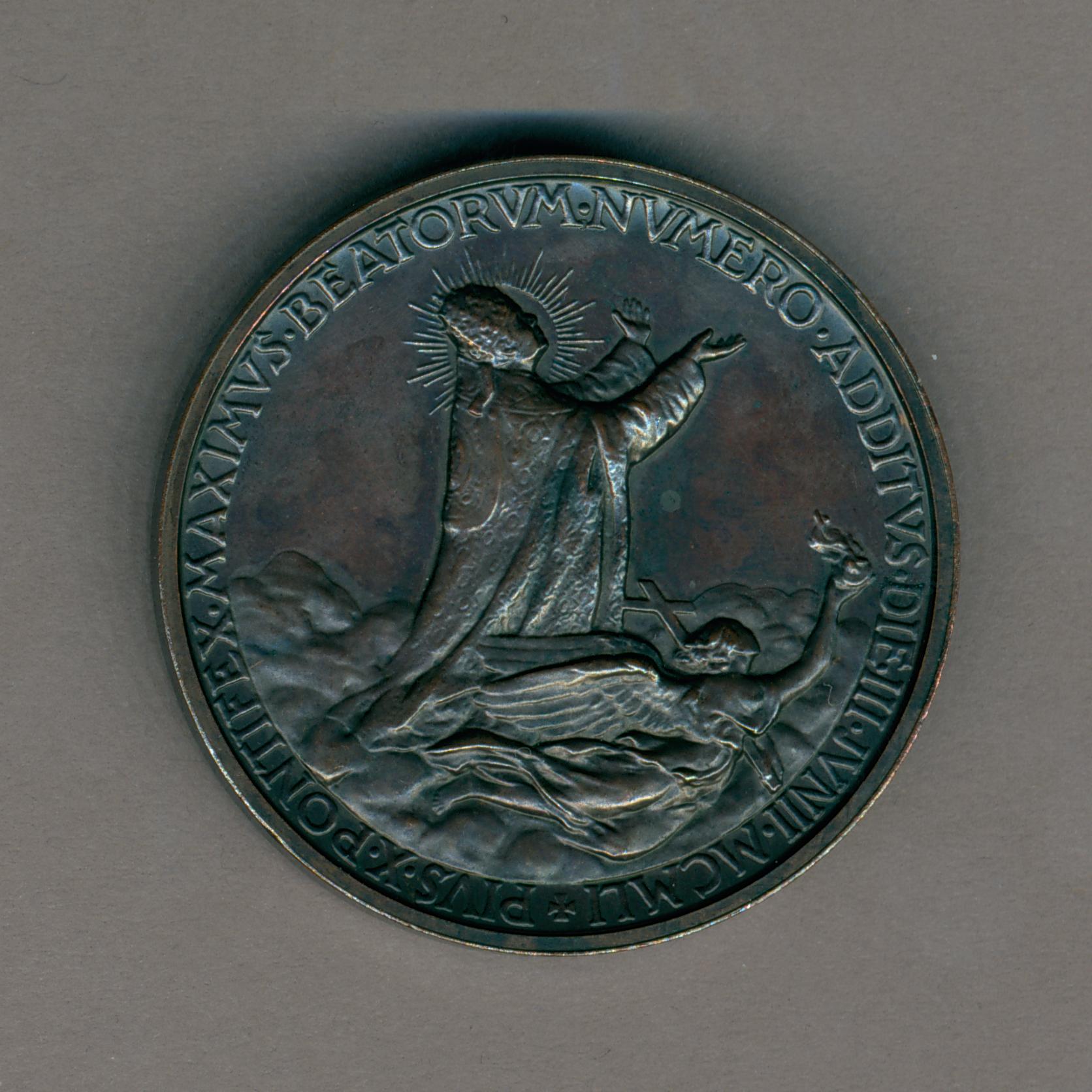 Pauspenning met portret paus Pius XII (1939-1958), met "... ANNO XIII", kz. paus Pius X en engel op wolken