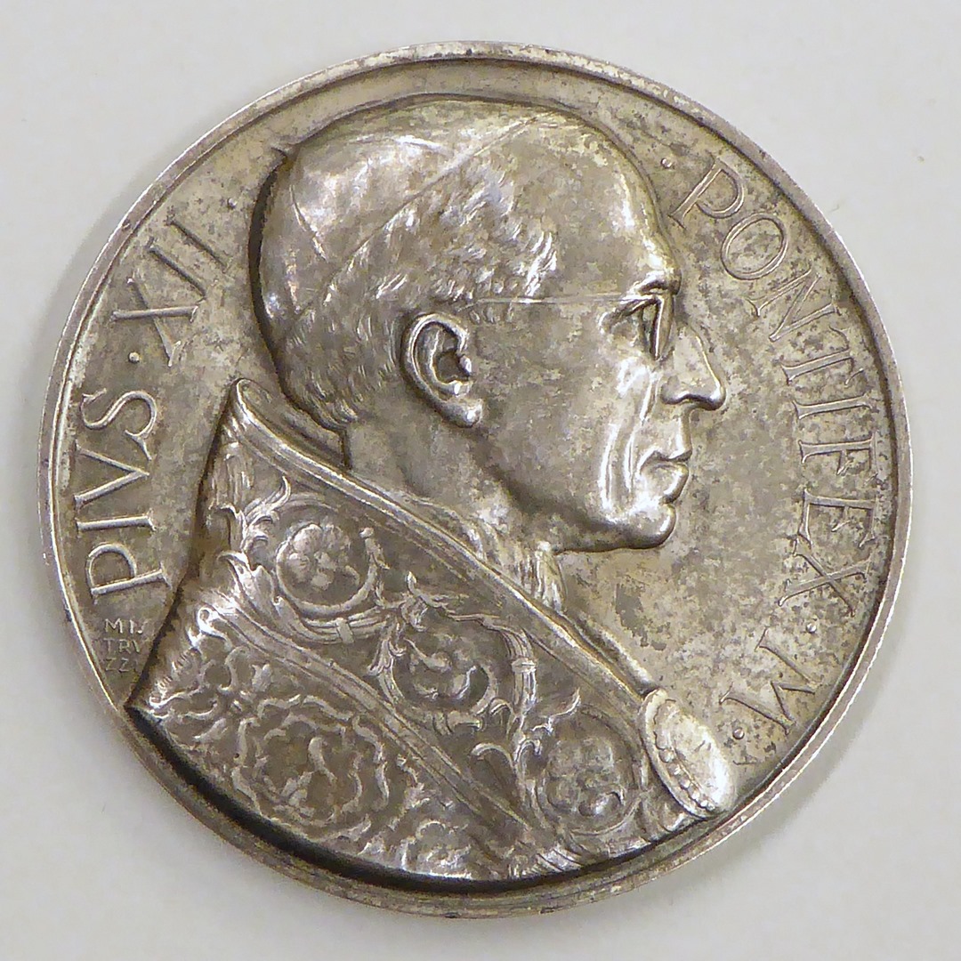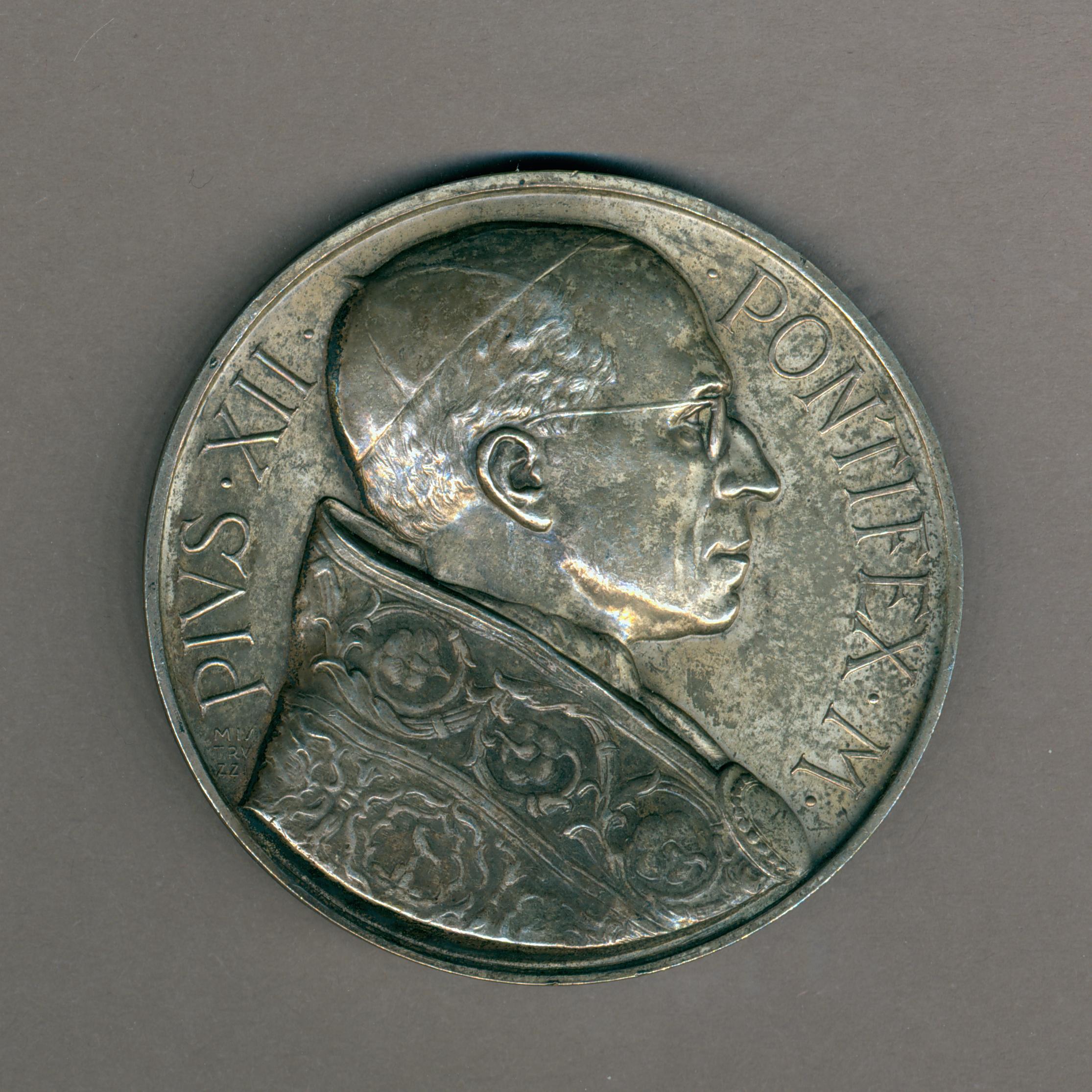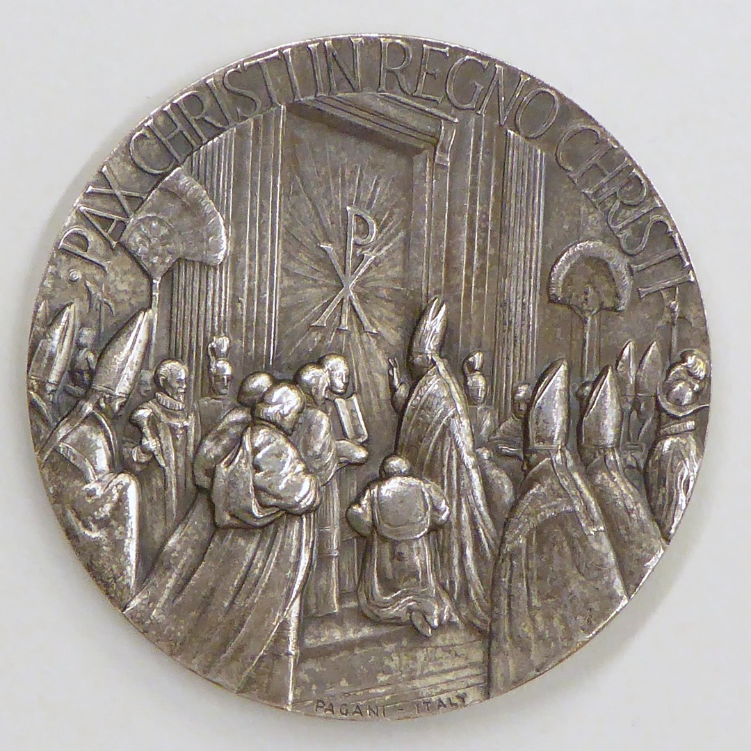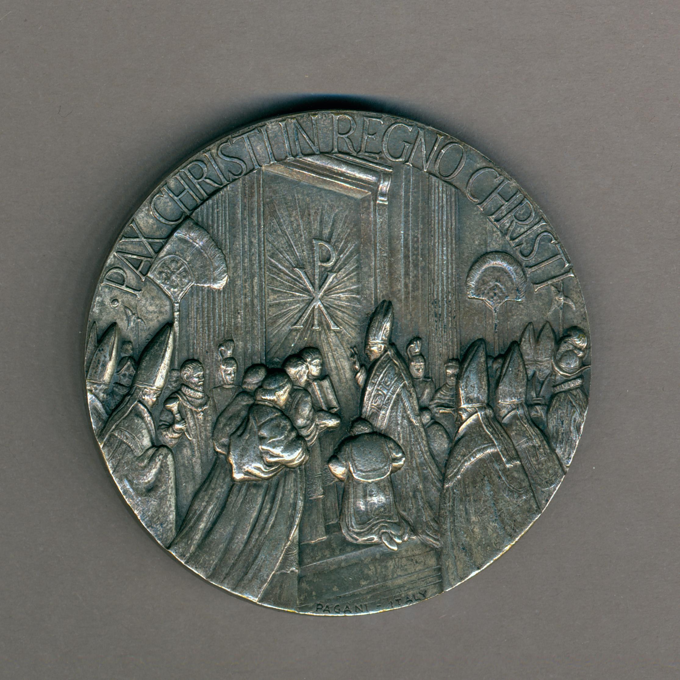 Pauspenning met portret paus Pius XII (1939-1958), kz. paus en kardinalen bij Heilige Deur