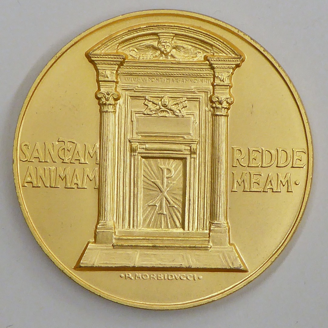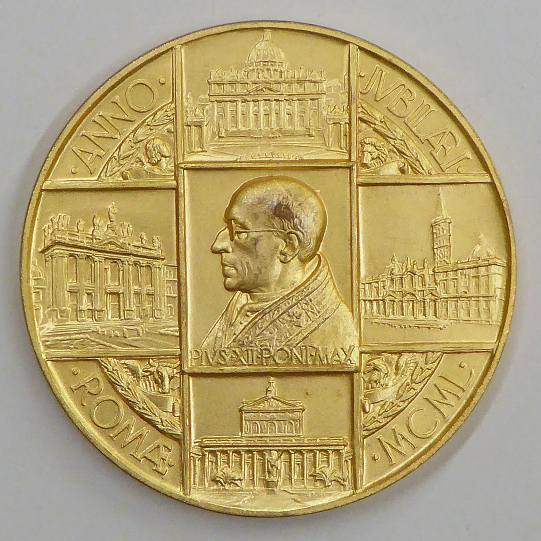 Pauspenning met portret paus Pius XII (1939-1958), omringd door de vier pauselijke basilieken te Rome, met "... MCML", kz. Heilige Deur