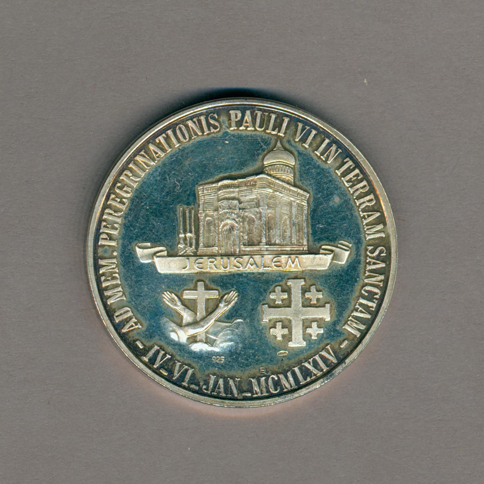 Pauspenning met portret paus Paulus VI (1963-1978), kz. H. Grafkerk met "Jerusalem", rechts kruis met twee armen, links Grieks kruis